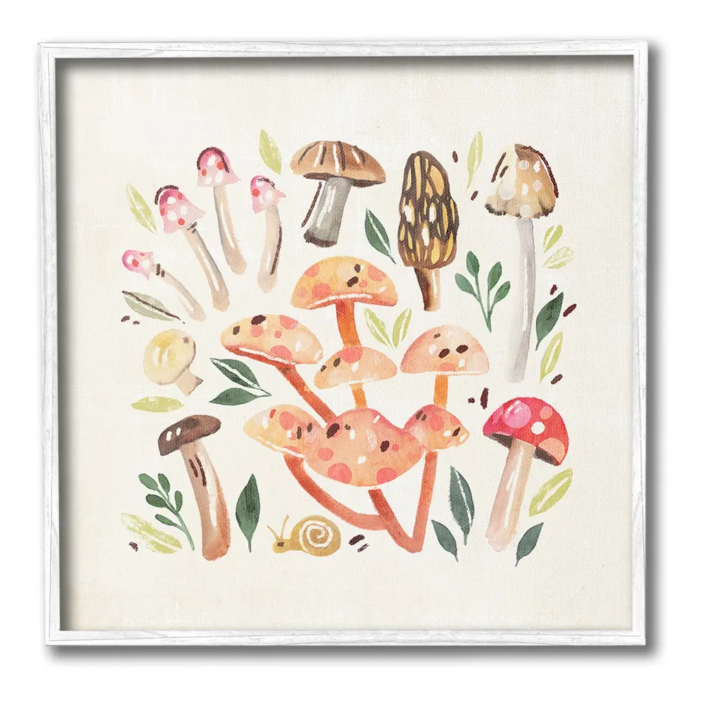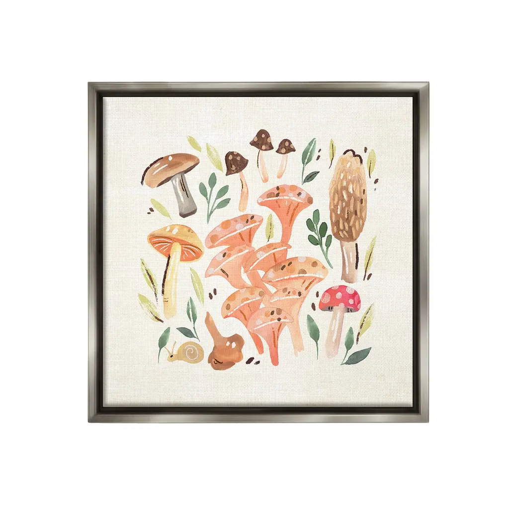 Elevate your home or office to the next level with Stupell Framed Floating Canvas Wall Art. Our premium hand-stretched canvas is mounted securely into a sturdy lightweight frame. The museum-style gap between the wrapped canvas and the box frame gives the illusion of floating artwork. Stupell Wall Art is made in the USA.Features: Dimensions: 18 x 1.7 x 18 Frame, 17 x 1.5 x 17 Canvas ArtFloating Frame Canvas Products are available in sizes 18"x18" and 25"x25". All Floating Frame Canvas Products have a 1.7" Depth.Wall Art is Ready to Hang with Hardware Free Hanging. No Installation required. For Easy Set Up Lean or Layer Artwork on Shelf or Against Wall. Artwork is Permently Fixed into the Frame.Our elevated 1.7" Thick Floating Frame is the perfect complement to our canvas style Wall Art. We use only the highest quality inks in house with industry leading printing solutions. Canvas is hand stretched over a durable wood foundation and then mounted securly into a Modern Box Frame. Made in the USA.Artwork Relates To: Animal, Plant, Nature, Botanical, Plant, Traditional, Study, Vintage, Cottage, Country, Mushroom, Leaf, SnailDesign by Annie Warren
