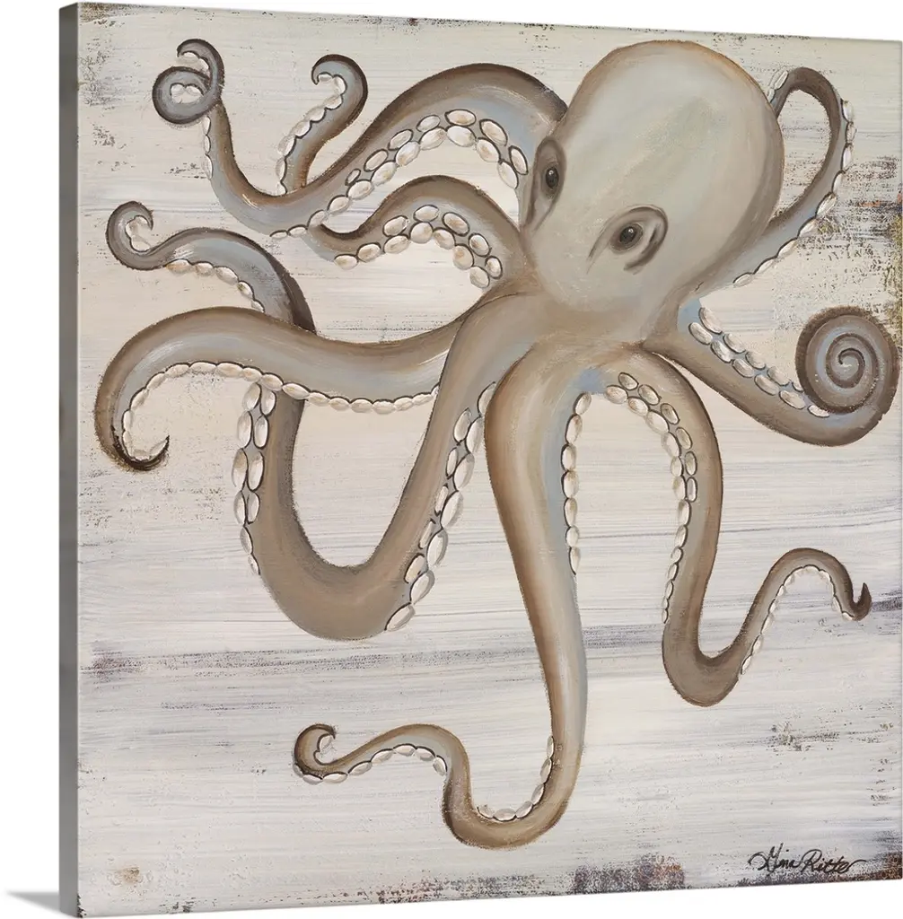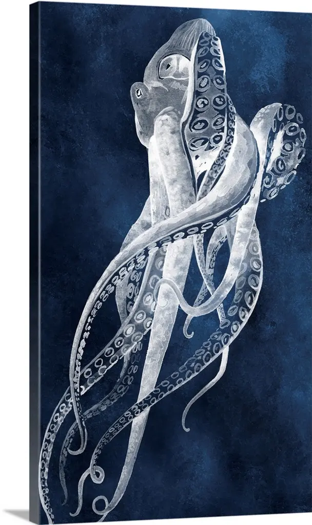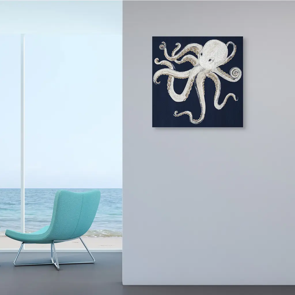 Stupell Whimsical Nautical Octopus Illustration Over Navy Blue Canvas Wall Art - 24 X 24
