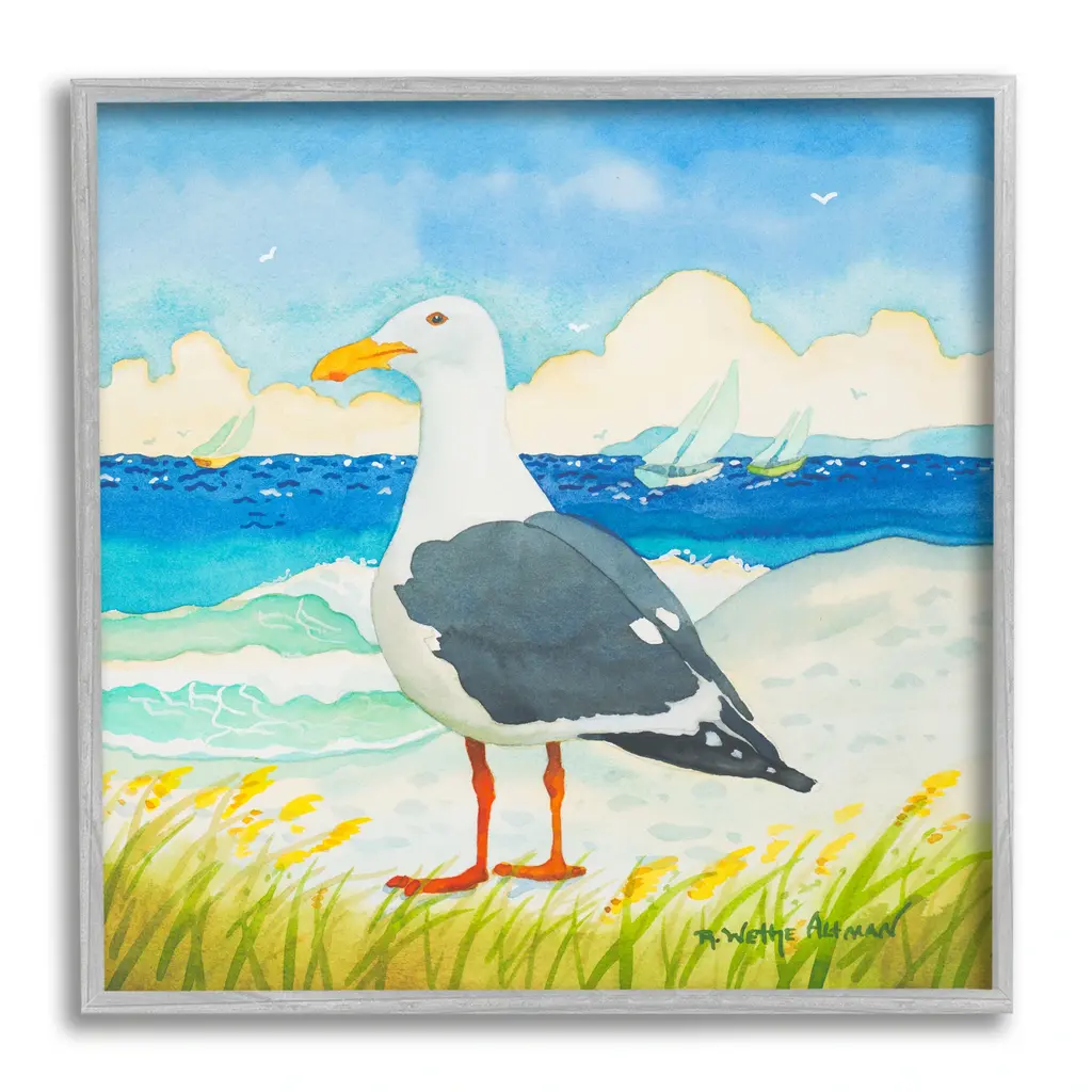 Our Framed Giclee Wall Art adds a touch of class to any space in your home or office. Frames are available in three alluring styles: black, gray farmhouse and white. Our textured artwork will add more depth and dimension to any space. Each piece is mounted with a 1.5 inch thick wood grain frame that is ready to hang! Looking for a statement piece? We have oversized artwork available.Features: Wall Art is Ready to Hang - No Installation or Hardware Needed. For Easy Set Up Lean or Layer Artwork on Shelf or Against Wall.Our giclee prints are carefully mounted on a durable MDF backing, and then perfectly finished in a 1.5 inch thick woodgrain frame. Mounted frame colors include black, gray farmhouse and white. Made In USA.Artwork Relates To: Bird; Animal, Seagull, Ocean, FishDesign by unknown