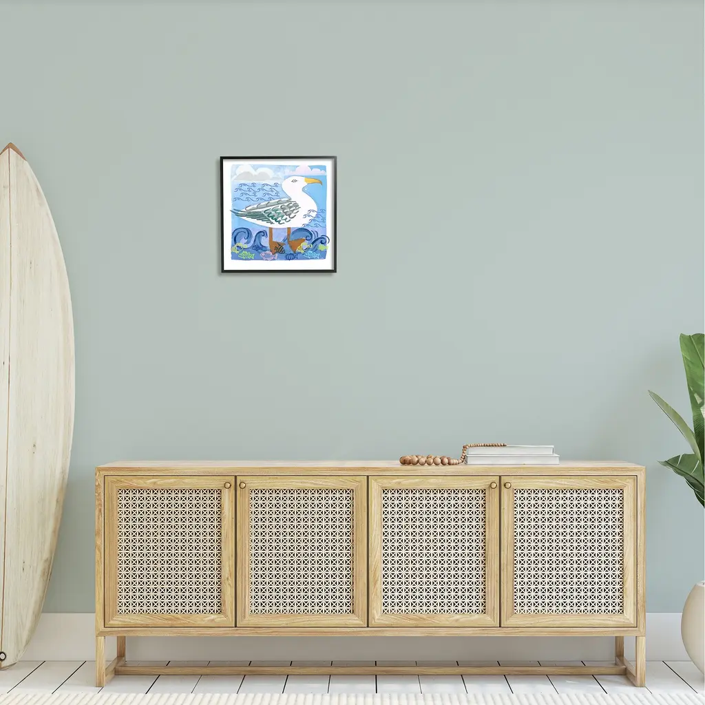 Our Framed Giclee Wall Art adds a touch of class to any space in your home or office. Frames are available in three alluring styles: black, gray farmhouse and white. Our textured artwork will add more depth and dimension to any space. Each piece is mounted with a 1.5 inch thick wood grain frame that is ready to hang! Looking for a statement piece? We have oversized artwork available.Features: Wall Art is Ready to Hang - No Installation or Hardware Needed. For Easy Set Up Lean or Layer Artwork on Shelf or Against Wall.Our giclee prints are carefully mounted on a durable MDF backing, and then perfectly finished in a 1.5 inch thick woodgrain frame. Mounted frame colors include black, gray farmhouse and white. Made In USA.Artwork Relates To: Bird; Animal, Seagull, Ocean, FishDesign by unknown