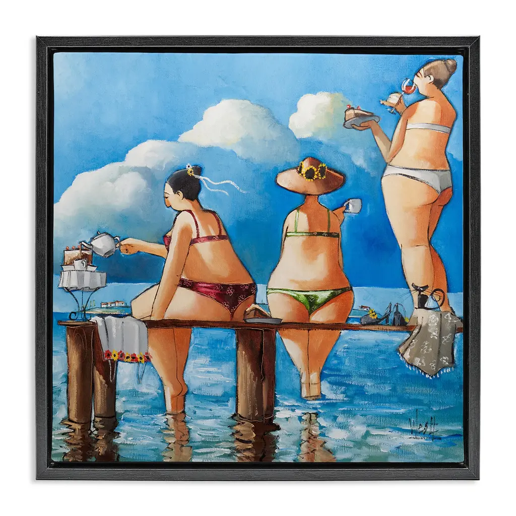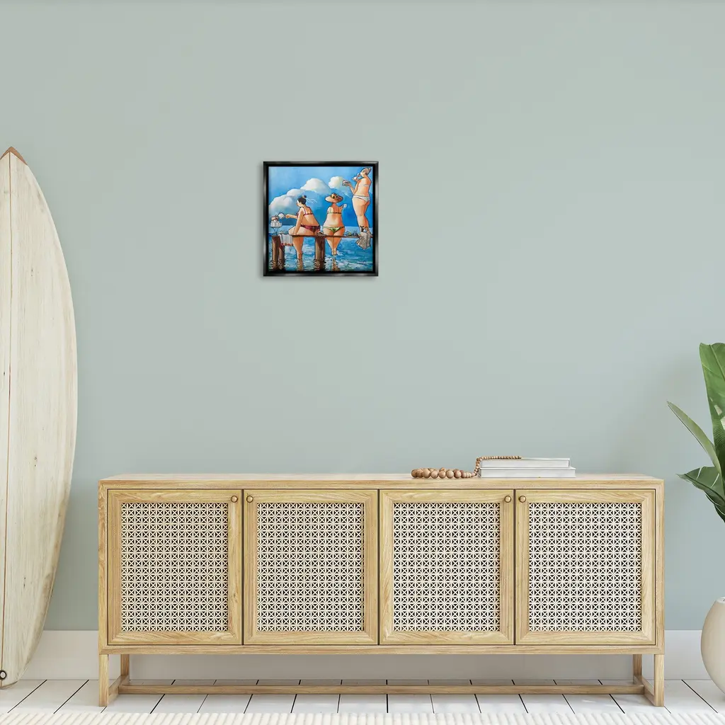 Elevate your home or office to the next level with Stupell Framed Floating Canvas Wall Art. Our premium hand-stretched canvas is mounted securely into a sturdy lightweight frame. The museum-style gap between the wrapped canvas and the box frame gives the illusion of floating artwork. Stupell Wall Art is made in the USA.Features: Dimensions: 18 x 1.7 x 18 Frame, 17 x 1.5 x 17 Canvas ArtFloating Frame Canvas Products are available in sizes 18"x18" and 25"x25". All Floating Frame Canvas Products have a 1.7" Depth.Wall Art is Ready to Hang with Hardware Free Hanging. No Installation required. For Easy Set Up Lean or Layer Artwork on Shelf or Against Wall. Artwork is Permently Fixed into the Frame.Our elevated 1.7" Thick Floating Frame is the perfect complement to our canvas style Wall Art. We use only the highest quality inks in house with industry leading printing solutions. Canvas is hand stretched over a durable wood foundation and then mounted securly into a Modern Box Frame. Made in the USA.Artwork Relates To: Person, Woman, Painting, Swimwear, Water, Waterfront, Leisure Activities, Beach, Water, Ocean, CoastDesign by Ronald West