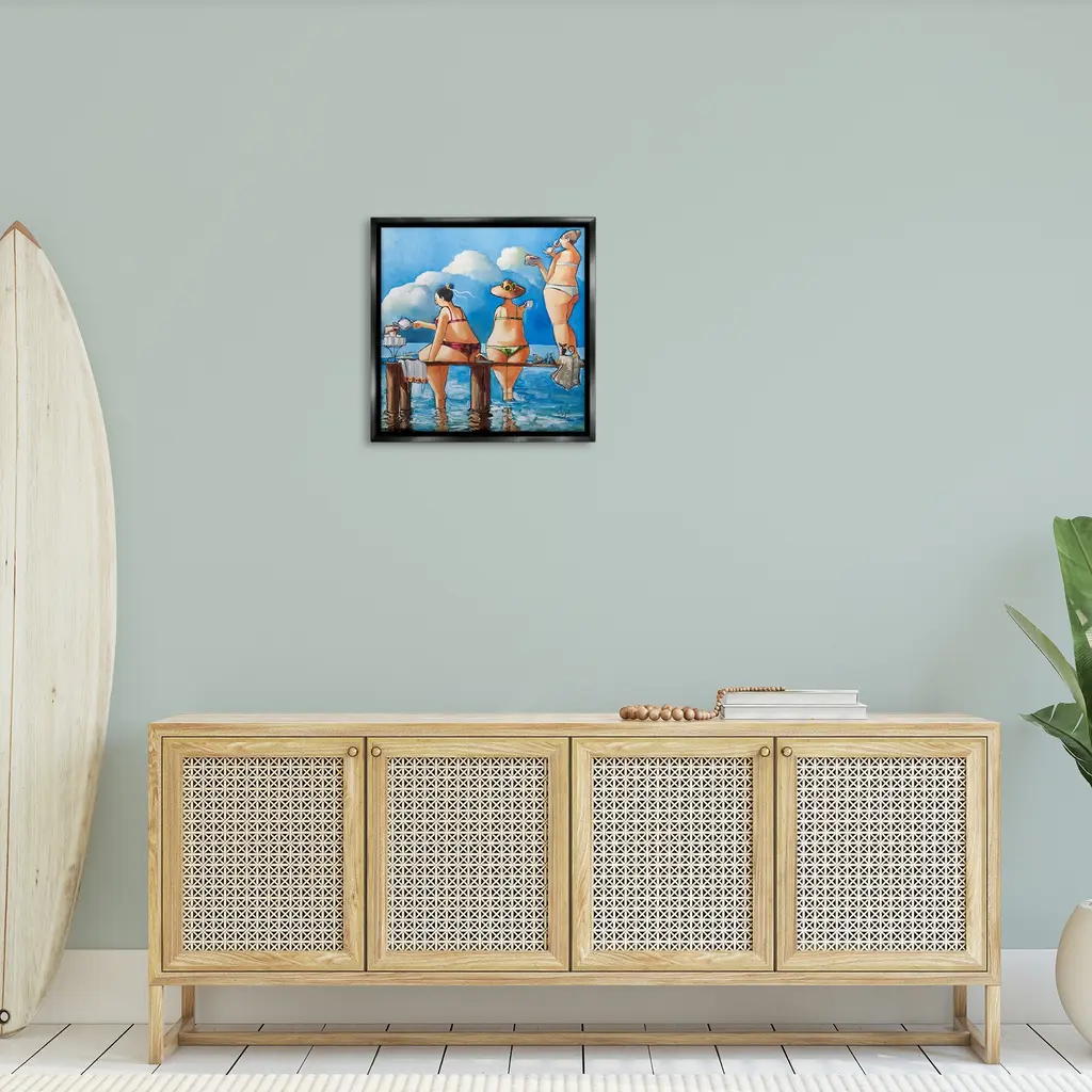 Elevate your home or office to the next level with Stupell Framed Floating Canvas Wall Art. Our premium hand-stretched canvas is mounted securely into a sturdy lightweight frame. The museum-style gap between the wrapped canvas and the box frame gives the illusion of floating artwork. Stupell Wall Art is made in the USA.Features: Dimensions: 18 x 1.7 x 18 Frame, 17 x 1.5 x 17 Canvas ArtFloating Frame Canvas Products are available in sizes 18"x18" and 25"x25". All Floating Frame Canvas Products have a 1.7" Depth.Wall Art is Ready to Hang with Hardware Free Hanging. No Installation required. For Easy Set Up Lean or Layer Artwork on Shelf or Against Wall. Artwork is Permently Fixed into the Frame.Our elevated 1.7" Thick Floating Frame is the perfect complement to our canvas style Wall Art. We use only the highest quality inks in house with industry leading printing solutions. Canvas is hand stretched over a durable wood foundation and then mounted securly into a Modern Box Frame. Made in the USA.Artwork Relates To: Person, Woman, Painting, Swimwear, Water, Waterfront, Leisure Activities, Beach, Water, Ocean, CoastDesign by Ronald West
