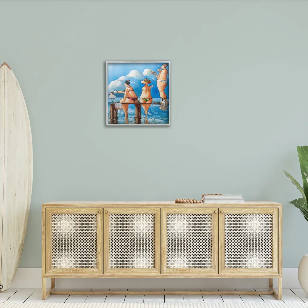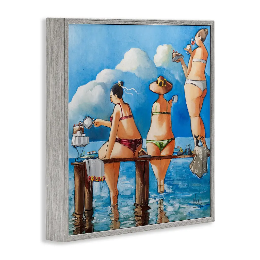 Our Framed Giclee Wall Art adds a touch of class to any space in your home or office. Frames are available in three alluring styles: black, gray farmhouse and white. Our textured artwork will add more depth and dimension to any space. Each piece is mounted with a 1.5 inch thick wood grain frame that is ready to hang! Looking for a statement piece? We have oversized artwork available. Room Type: Living Room, Den, Hallway, Office, Entryway, Study, Dining Room or Bedroom, Guest Room, Studio, Dorm or BoudoirFeatures: Dimensions: 12 x 1.5 x 12 FramedFramed Giclee Sizes Include Standard: 12 x 1.5 x 12 Large: 17 x 1.5 x 17 Oversized: 24 x 1.5 x 24Wall Art is Ready to Hang - No Installation or Hardware Needed. For Easy Set Up Lean or Layer Artwork on Shelf or Against Wall.Our giclée prints are carefully mounted on a durable MDF backing, and then perfectly finished in a 1.5 inch thick woodgrain frame. Mounted frame colors include black, gray farmhouse and white. Made In USA.Artwork Relates To: Person, Woman, Painting, Swimwear, Water, Waterfront, Leisure Activities, Beach, Water, Ocean, CoastDesign by Ronald West