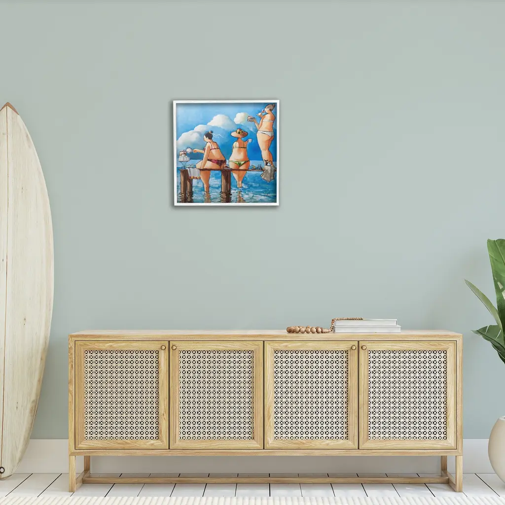 Our Framed Giclee Wall Art adds a touch of class to any space in your home or office. Frames are available in three alluring styles: black, gray farmhouse and white. Our textured artwork will add more depth and dimension to any space. Each piece is mounted with a 1.5 inch thick wood grain frame that is ready to hang! Looking for a statement piece? We have oversized artwork available. Room Type: Living Room, Den, Hallway, Office, Entryway, Study, Dining Room or Bedroom, Guest Room, Studio, Dorm or BoudoirFeatures: Dimensions: 12 x 1.5 x 12 FramedFramed Giclee Sizes Include Standard: 12 x 1.5 x 12 Large: 17 x 1.5 x 17 Oversized: 24 x 1.5 x 24Wall Art is Ready to Hang - No Installation or Hardware Needed. For Easy Set Up Lean or Layer Artwork on Shelf or Against Wall.Our giclée prints are carefully mounted on a durable MDF backing, and then perfectly finished in a 1.5 inch thick woodgrain frame. Mounted frame colors include black, gray farmhouse and white. Made In USA.Artwork Relates To: Person, Woman, Painting, Swimwear, Water, Waterfront, Leisure Activities, Beach, Water, Ocean, CoastDesign by Ronald West