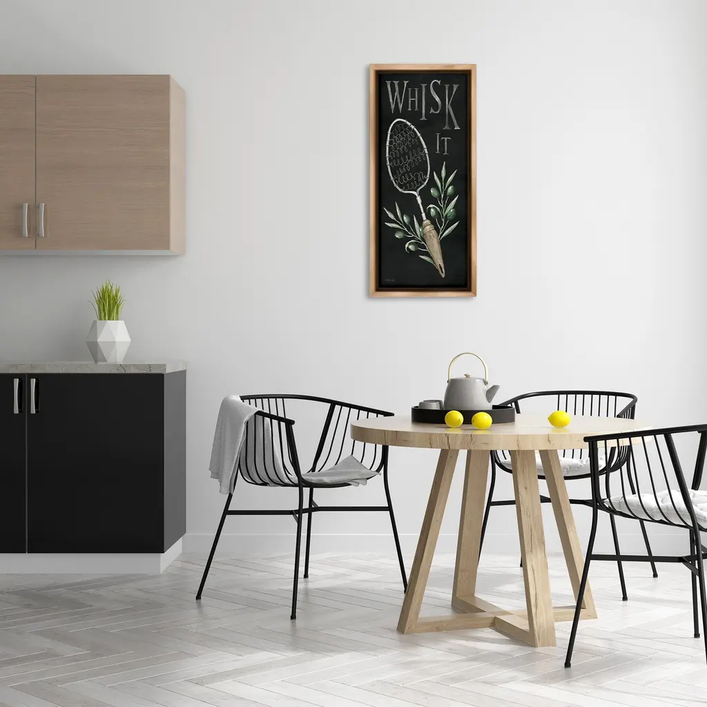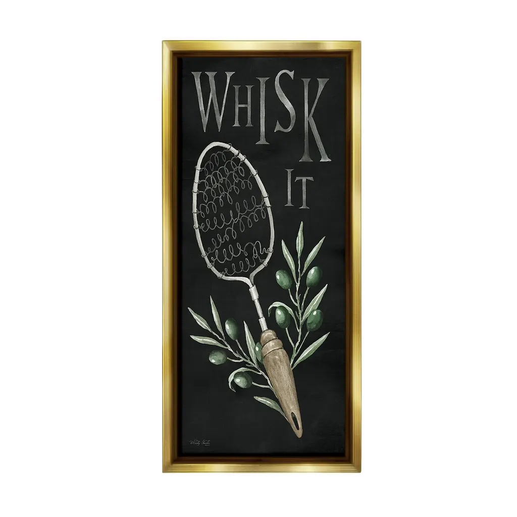 Elevate your home or office to the next level with Stupell Framed Floating Canvas Wall Art. Our premium hand-stretched canvas is mounted securely into a sturdy lightweight frame. The museum-style gap between the wrapped canvas and the box frame gives the illusion of floating artwork. Stupell Wall Art is made in the USA.Features: Dimensions: 11 x 1.7 x 25 Frame, 10 x 1.5 x 24 Canvas ArtFloating Frame Canvas Products are available in sizes 11"x25" and 14"x31". All Floating Frame Canvas Products have a 1.7" Depth.Wall Art is Ready to Hang with Hardware Free Hanging. No Installation required. For Easy Set Up Lean or Layer Artwork on Shelf or Against Wall. Artwork is Permently Fixed into the Frame.Our elevated 1.7" Thick Floating Frame is the perfect complement to our canvas style Wall Art. We use only the highest quality inks in house with industry leading printing solutions. Canvas is hand stretched over a durable wood foundation and then mounted securly into a Modern Box Frame. Made in the USA.Artwork Relates To: Kitchen, Utensil, Country, Rustic, Botanical, Plant, Leaf, Mixer, Whisk ItDesign by Cindy Jacobs