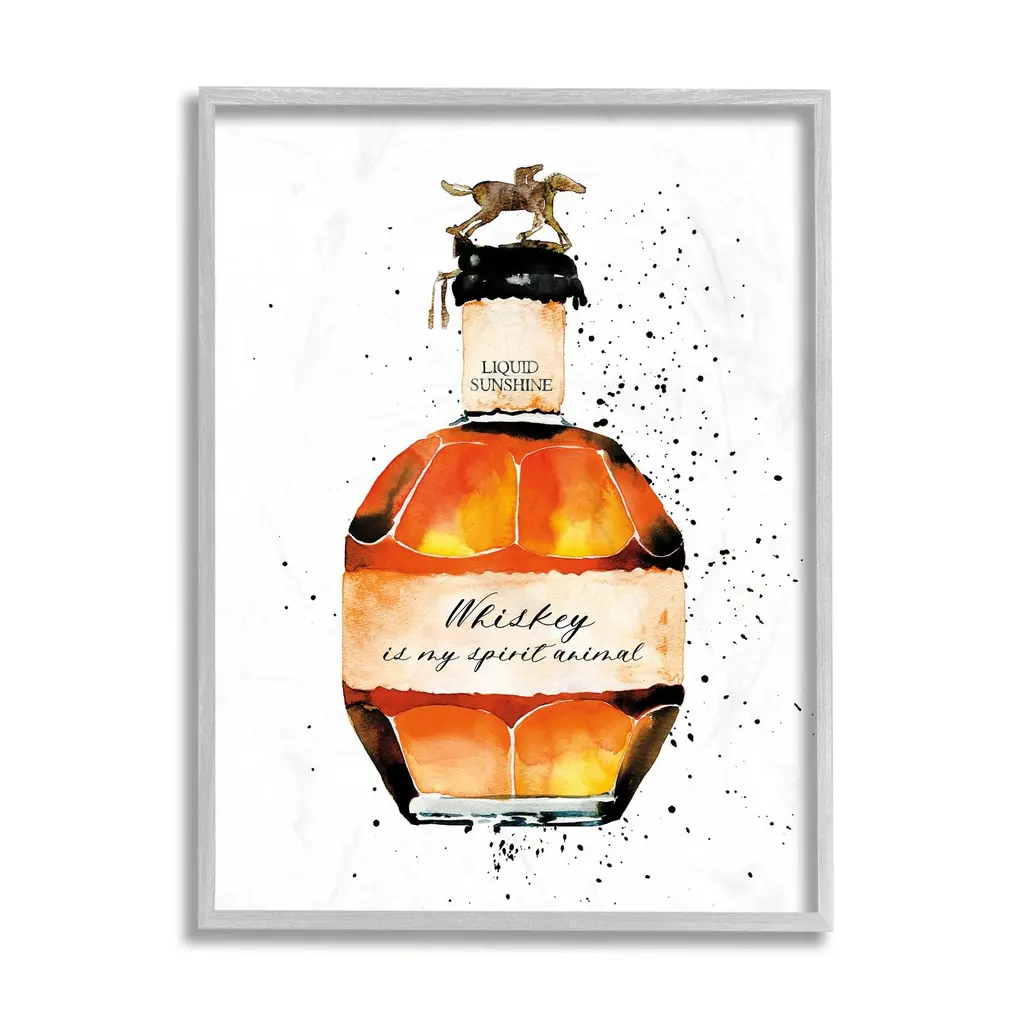 Stupell Whiskey Is My Spirit Animal Quote Liquor Bottle Framed Giclee Texturized Art By Mercedes Lopez Charro - 11 X 14 - White