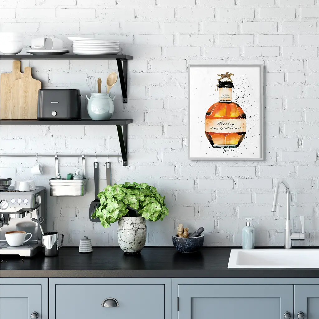 Stupell Whiskey Is My Spirit Animal Quote Liquor Bottle Framed Giclee Texturized Art By Mercedes Lopez Charro - 16 X 20 - Grey