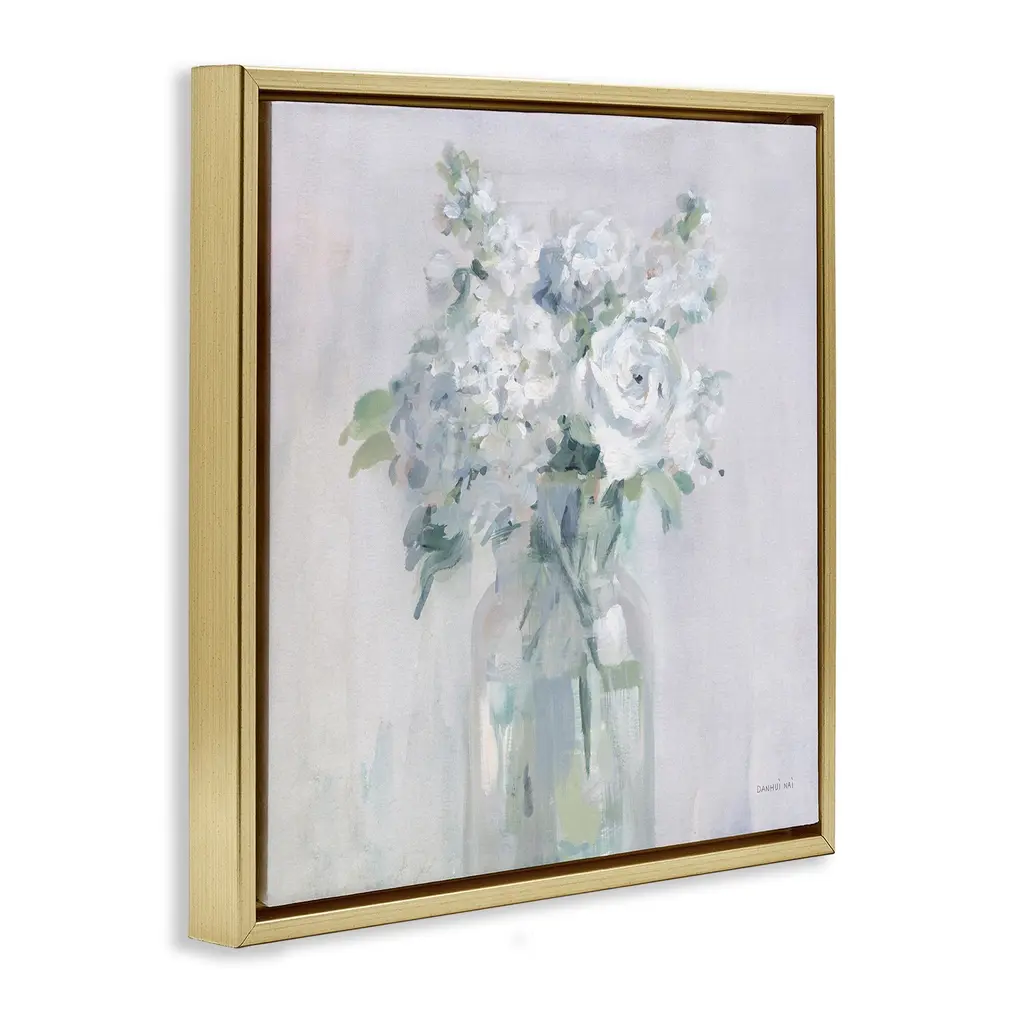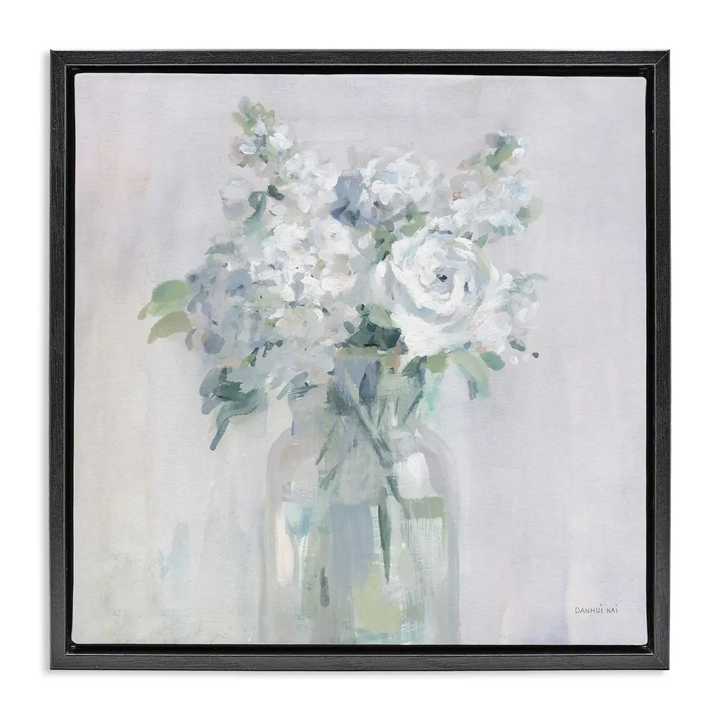 Elevate your home or office to the next level with Stupell Framed Floating Canvas Wall Art. Our premium hand-stretched canvas is mounted securely into a sturdy lightweight frame. The museum-style gap between the wrapped canvas and the box frame gives the illusion of floating artwork. Stupell Wall Art is made in the USA.Features: Dimensions: 18 x 1.7 x 18 Frame, 17 x 1.5 x 17 Canvas ArtFloating Frame Canvas Products are available in sizes 18"x18" and 25"x25". All Floating Frame Canvas Products have a 1.7" Depth.Wall Art is Ready to Hang with Hardware Free Hanging. No Installation required. For Easy Set Up Lean or Layer Artwork on Shelf or Against Wall. Artwork is Permently Fixed into the Frame.Our elevated 1.7" Thick Floating Frame is the perfect complement to our canvas style Wall Art. We use only the highest quality inks in house with industry leading printing solutions. Canvas is hand stretched over a durable wood foundation and then mounted securly into a Modern Box Frame. Made in the USA.Artwork Relates To: Painting, Flower, Plant, Vase, Flower Arrangement, Flower Bouquet, Floral, White, RoseDesign by Danhui Nai