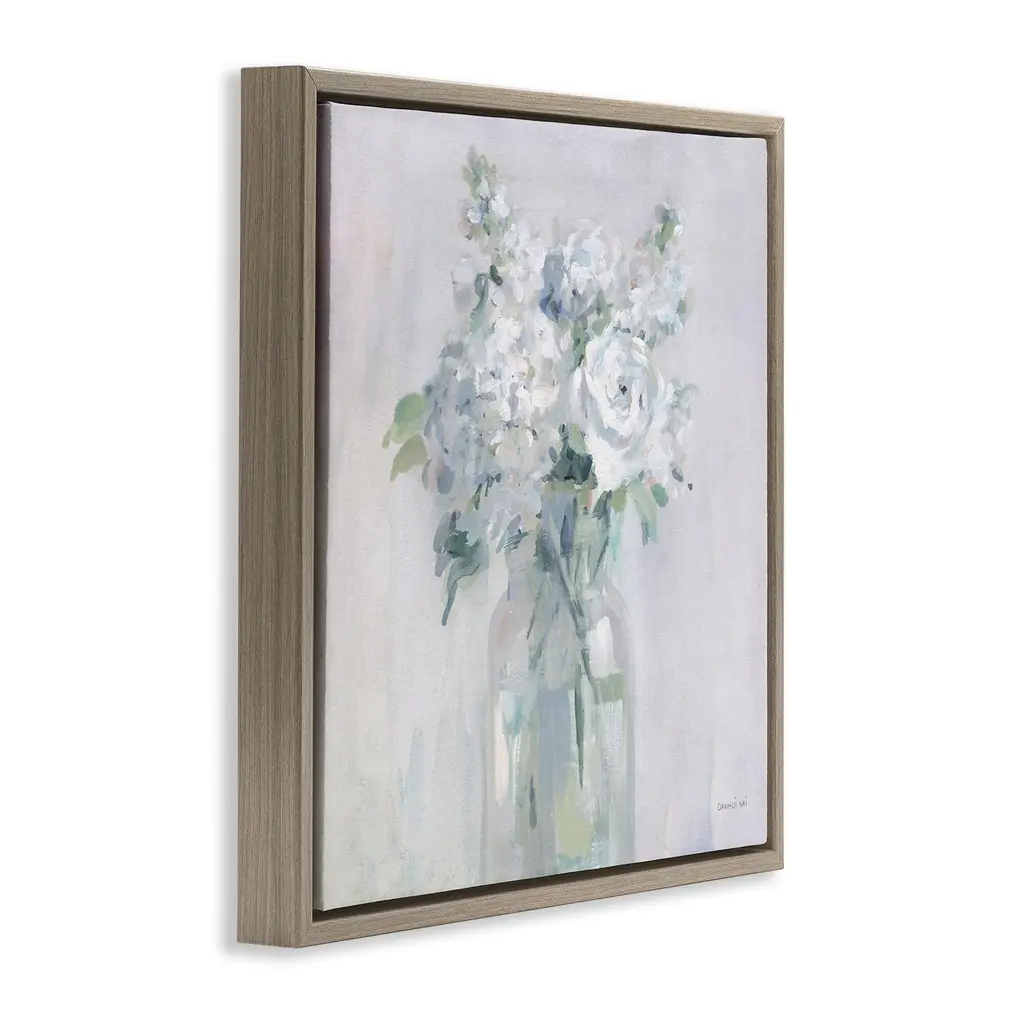 Elevate your home or office to the next level with Stupell Framed Floating Canvas Wall Art. Our premium hand-stretched canvas is mounted securely into a sturdy lightweight frame. The museum-style gap between the wrapped canvas and the box frame gives the illusion of floating artwork. Stupell Wall Art is made in the USA.Features: Dimensions: 18 x 1.7 x 18 Frame, 17 x 1.5 x 17 Canvas ArtFloating Frame Canvas Products are available in sizes 18"x18" and 25"x25". All Floating Frame Canvas Products have a 1.7" Depth.Wall Art is Ready to Hang with Hardware Free Hanging. No Installation required. For Easy Set Up Lean or Layer Artwork on Shelf or Against Wall. Artwork is Permently Fixed into the Frame.Our elevated 1.7" Thick Floating Frame is the perfect complement to our canvas style Wall Art. We use only the highest quality inks in house with industry leading printing solutions. Canvas is hand stretched over a durable wood foundation and then mounted securly into a Modern Box Frame. Made in the USA.Artwork Relates To: Painting, Flower, Plant, Vase, Flower Arrangement, Flower Bouquet, Floral, White, RoseDesign by Danhui Nai