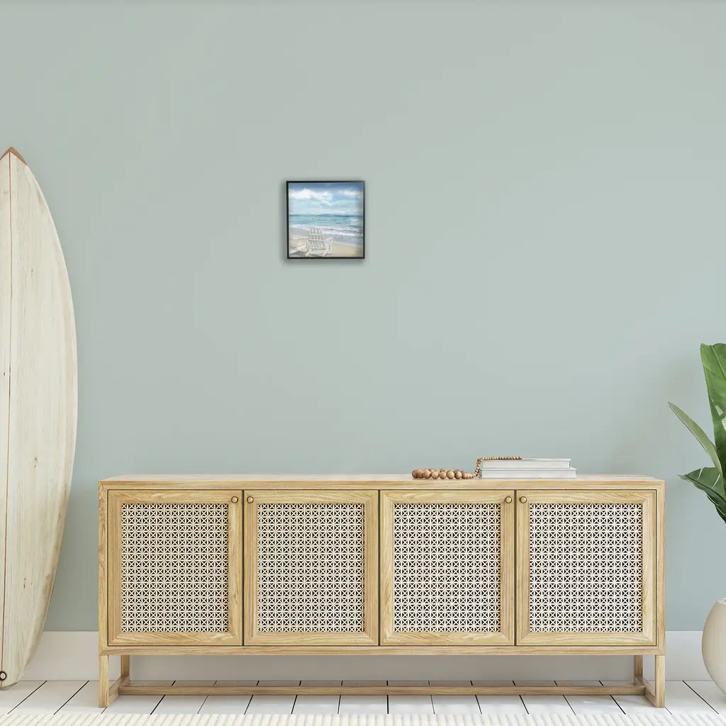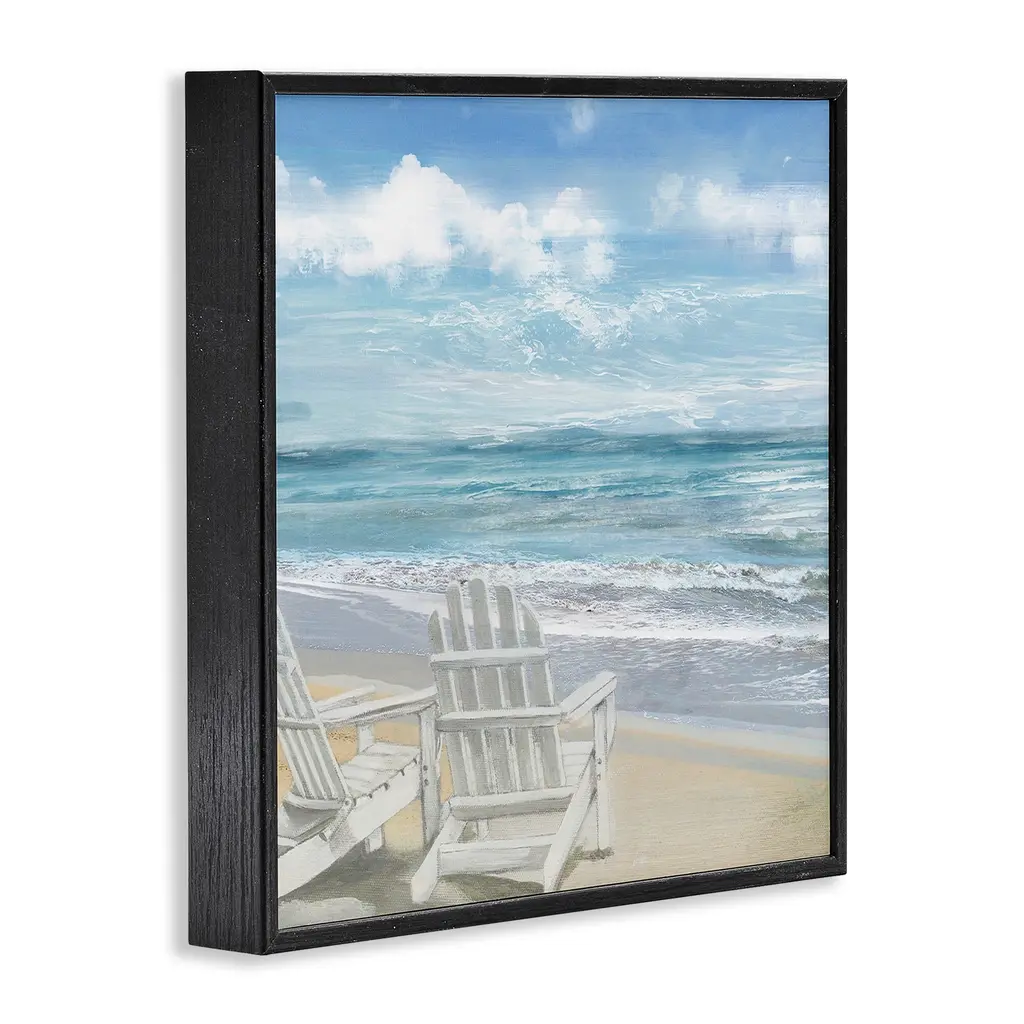 Stupell White Adirondack Chairs On The Beach Painting Framed Art, 12 X 1.5 X 12, Proudly Made In Usa - Multi-Color - 12 X 12 - Black