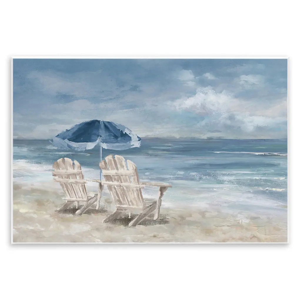 Stupell White Adirondack Chairs On The Beach Painting Framed Art, 12 X 1.5 X 12, Proudly Made In Usa - Multi-Color - 24 X 24 - White
