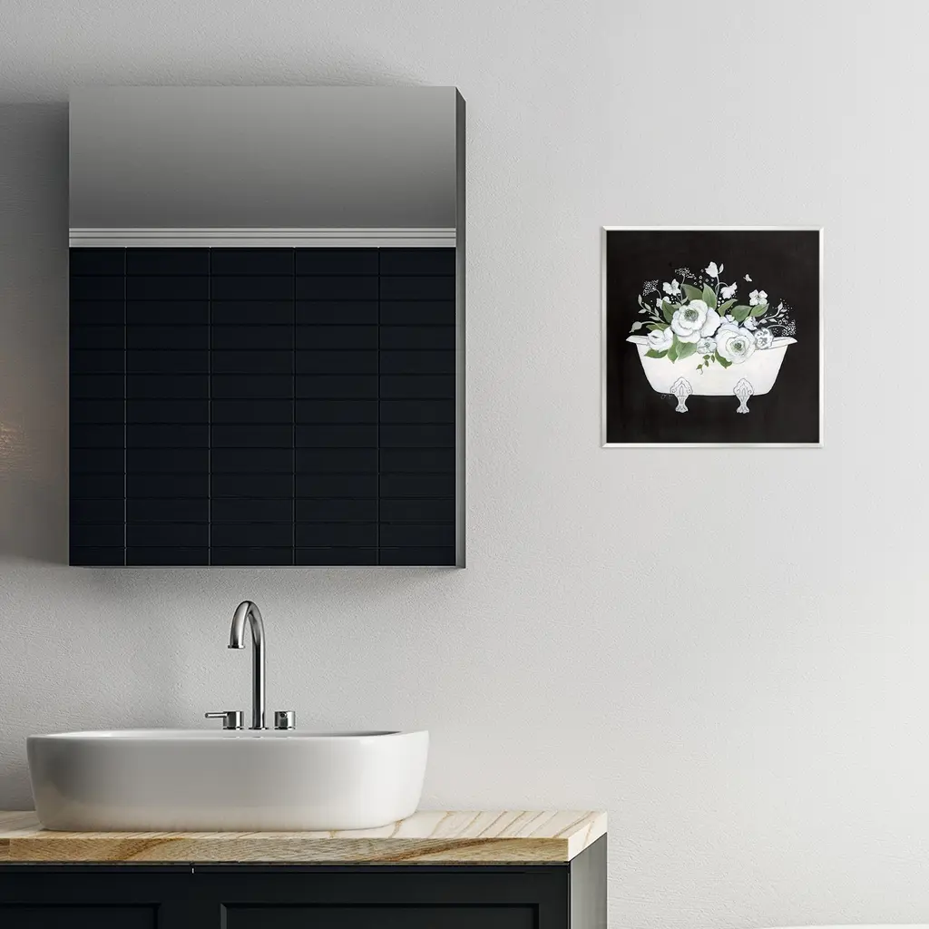 Our wall plaques start as high-quality lithograph prints mounted on durable 0.5-inch thick MDF wood. Each piece is hand finished and comes with a fresh layer of white foil on the sides to give it a crisp, clean look. Plaques arrive ready to hang without installation and come with removable plastic corners to keep them from damage in transit. Stupell Wall Art is made in the USA.Features: Dimensions: 12 x 0.5 x 12 InchesWall Art is Ready to Hang with Hardware Free Hanging. No installation required. For Easy Set Up Lean or Layer Artwork on Shelf or Against Wall.All of our wall plaques start off as high quality lithograph prints that are then mounted on durable 0.5 inch thick MDF wood. Each piece is hand finished and comes with a fresh layer of foil on the sides to give it a crisp clean look. Made In USA.Artwork Relates To: Bathing, Bathtub, Tub, Bathroom, Floral, Flower, Botanical, ButterflyDesign by Janet Tava