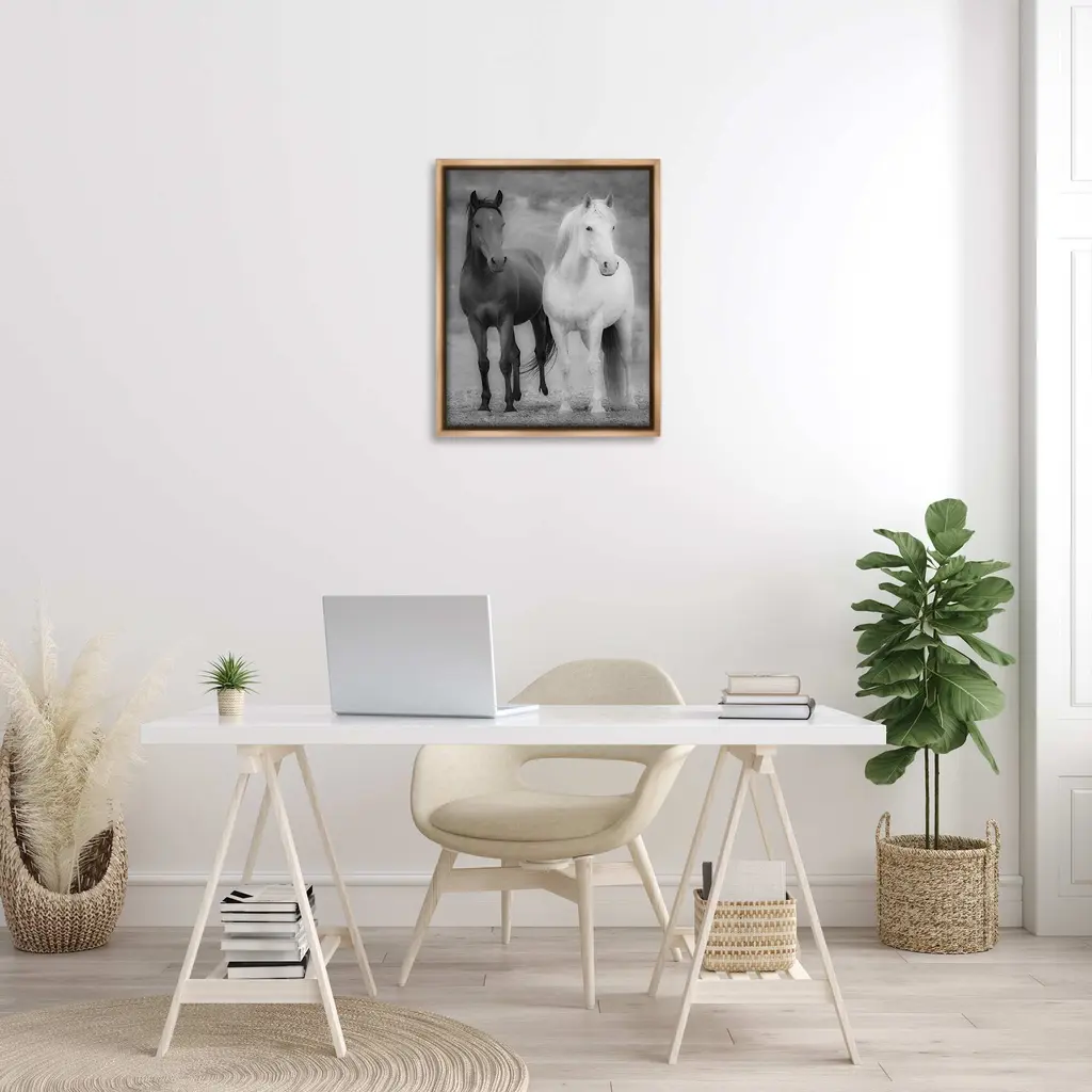 Elevate your home or office to the next level with Stupell Framed Floating Canvas Wall Art. Our premium hand-stretched canvas is mounted securely into a sturdy lightweight frame. The museum-style gap between the wrapped canvas and the box frame gives the illusion of floating artwork. Stupell Wall Art is made in the USA.Features: Dimensions: 17 x 1.7 x 21 Frame, 16 x 1.5 x 20 Canvas ArtFloating Frame Canvas Products are available in sizes 17"x21" and 25"x31". All Floating Frame Canvas Products have a 1.7" Depth.Wall Art is Ready to Hang with Hardware Free Hanging. No Installation required. For Easy Set Up Lean or Layer Artwork on Shelf or Against Wall. Artwork is Permently Fixed into the Frame.Our elevated 1.7" Thick Floating Frame is the perfect complement to our canvas style Wall Art. We use only the highest quality inks in house with industry leading printing solutions. Canvas is hand stretched over a durable wood foundation and then mounted securly into a Modern Box Frame. Made in the USA.Artwork Relates To: Andalusian Horse, Animal, Horse, Mammal, Stallion, Farm, Country, MonochromeDesign by JG Studios