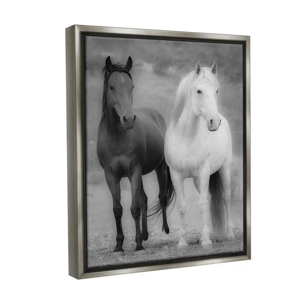 Stupell White & Black Horses Framed Floater Canvas Wall Art Design By Jg Studios - 25 X 31 - Grey