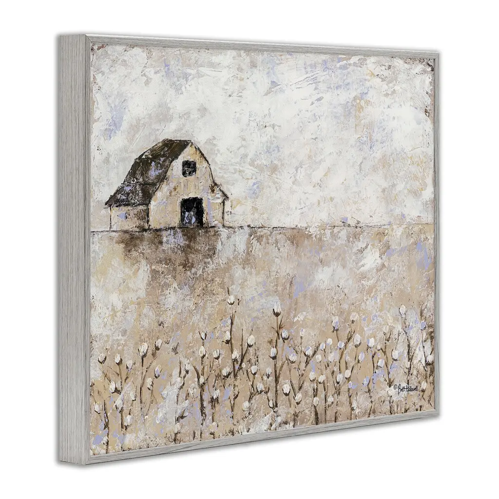 Stupell White Barn Distressed Landscape Cotton Field Florals Framed Wall Art - Off-White - 11 X 14 - Grey