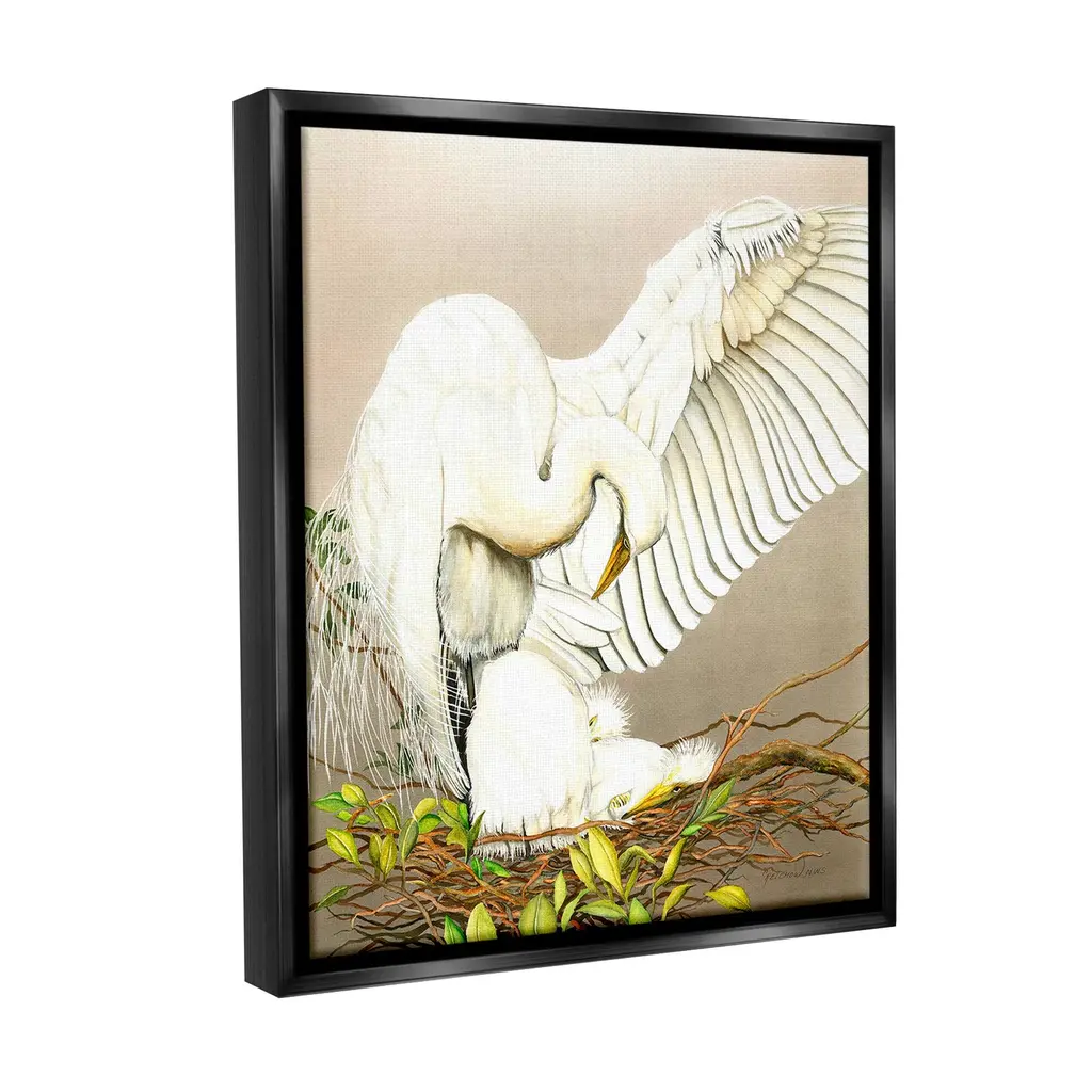 Elevate your home or office to the next level with Stupell Framed Floating Canvas Wall Art. Our premium hand-stretched canvas is mounted securely into a sturdy lightweight frame. The museum-style gap between the wrapped canvas and the box frame gives the illusion of floating artwork. Stupell Wall Art is made in the USA.Features: Dimensions: 17 x 1.7 x 21 Frame, 16 x 1.5 x 20 Canvas ArtFloating Frame Canvas Products are available in sizes 17"x21" and 25"x31". All Floating Frame Canvas Products have a 1.7" Depth.Wall Art is Ready to Hang with Hardware Free Hanging. No Installation required. For Easy Set Up Lean or Layer Artwork on Shelf or Against Wall. Artwork is Permently Fixed into the Frame.Our elevated 1.7" Thick Floating Frame is the perfect complement to our canvas style Wall Art. We use only the highest quality inks in house with industry leading printing solutions. Canvas is hand stretched over a durable wood foundation and then mounted securly into a Modern Box Frame. Made in the USA.Artwork Relates To: Animal, Bird, Waterfowl, Heron, Crane Bird, Egret, Nature, Nest, LeafDesign by Christine Reichow