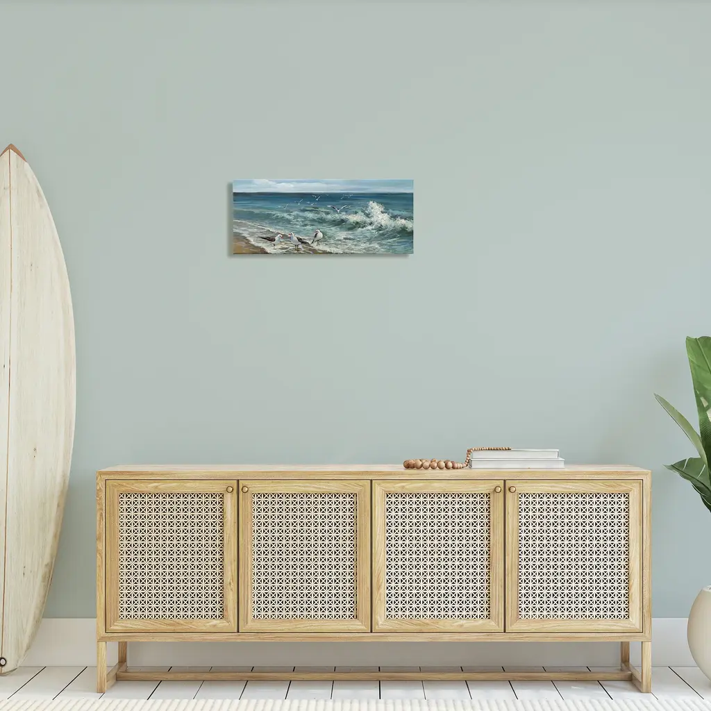 Stupell White Caps On Incoming Tied Beach Seagulls Canvas Wall Art - Blue - 10 X 24