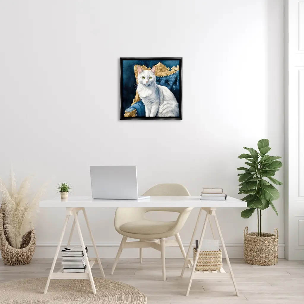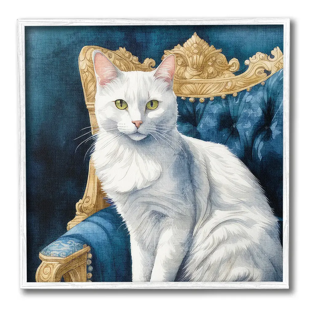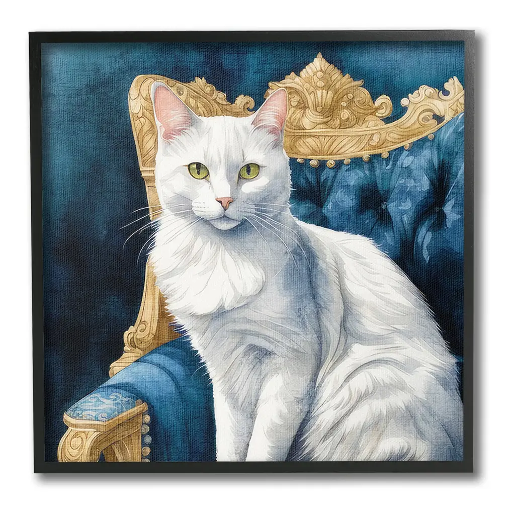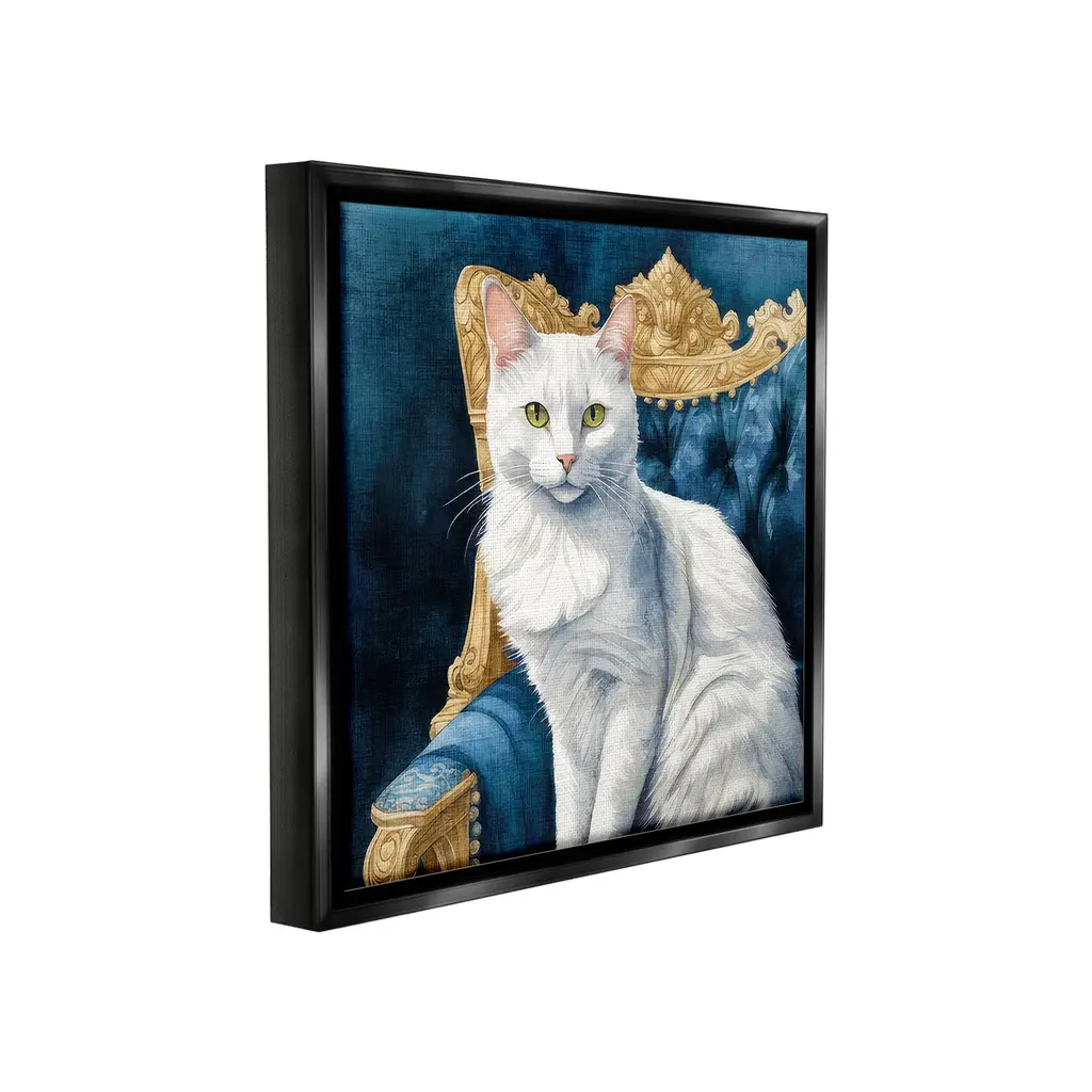 Elevate your home or office to the next level with Stupell Framed Floating Canvas Wall Art. Our premium hand-stretched canvas is mounted securely into a sturdy lightweight frame. The museum-style gap between the wrapped canvas and the box frame gives the illusion of floating artwork. Stupell Wall Art is made in the USA.Features: Dimensions: 18 x 1.7 x 18 Frame, 17 x 1.5 x 17 Canvas ArtFloating Frame Canvas Products are available in sizes 18"x18" and 25"x25". All Floating Frame Canvas Products have a 1.7" Depth.Wall Art is Ready to Hang with Hardware Free Hanging. No Installation required. For Easy Set Up Lean or Layer Artwork on Shelf or Against Wall. Artwork is Permently Fixed into the Frame.Our elevated 1.7" Thick Floating Frame is the perfect complement to our canvas style Wall Art. We use only the highest quality inks in house with industry leading printing solutions. Canvas is hand stretched over a durable wood foundation and then mounted securly into a Modern Box Frame. Made in the USA.Artwork Relates To: Angora, Animal, Cat, Mammal, Pet, Armchair, Regal, TraditionalDesign by Kim Allen