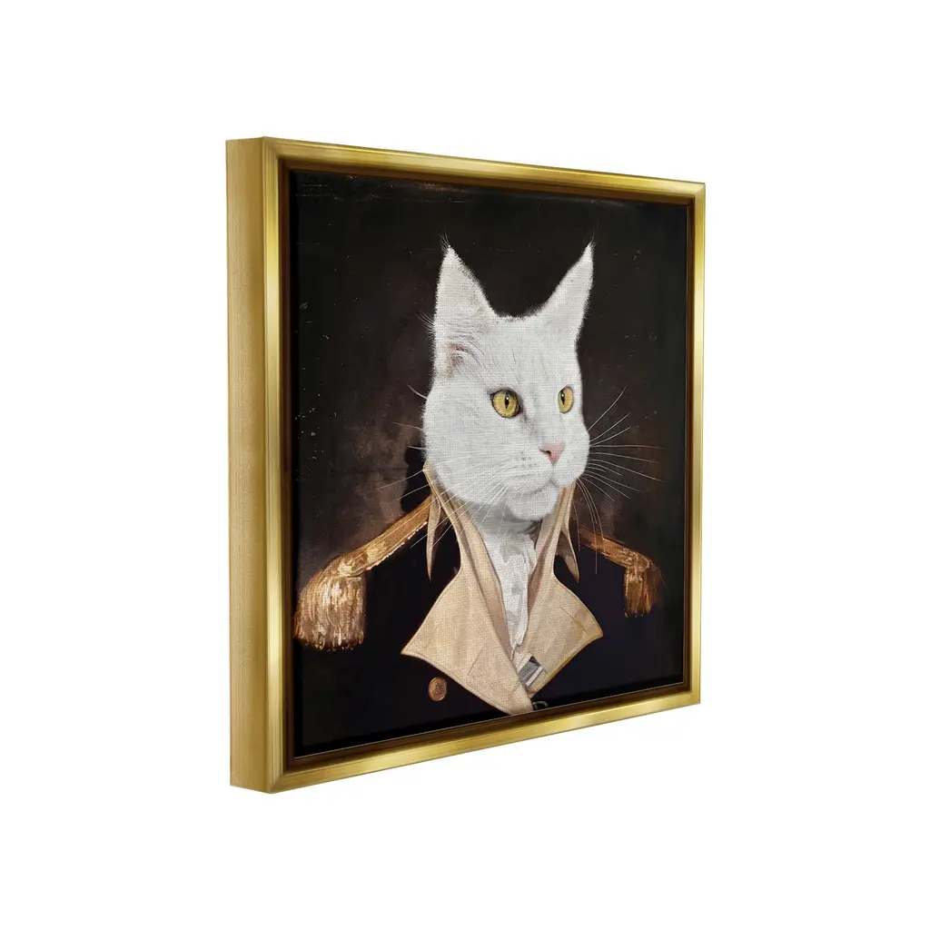 Stupell White Cat In Uniform Framed Floater Canvas Wall Art Design By Karen Burke - 18 X 18 - Gold