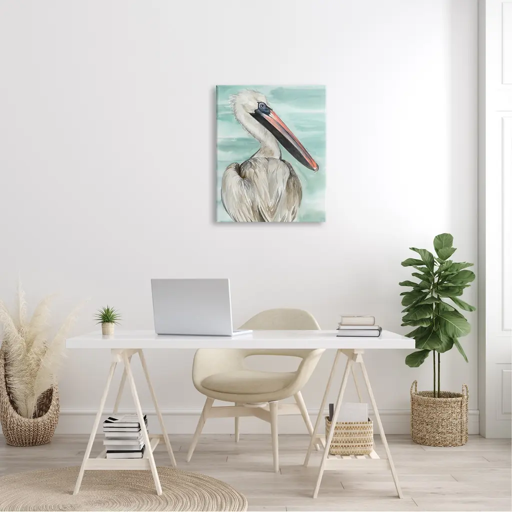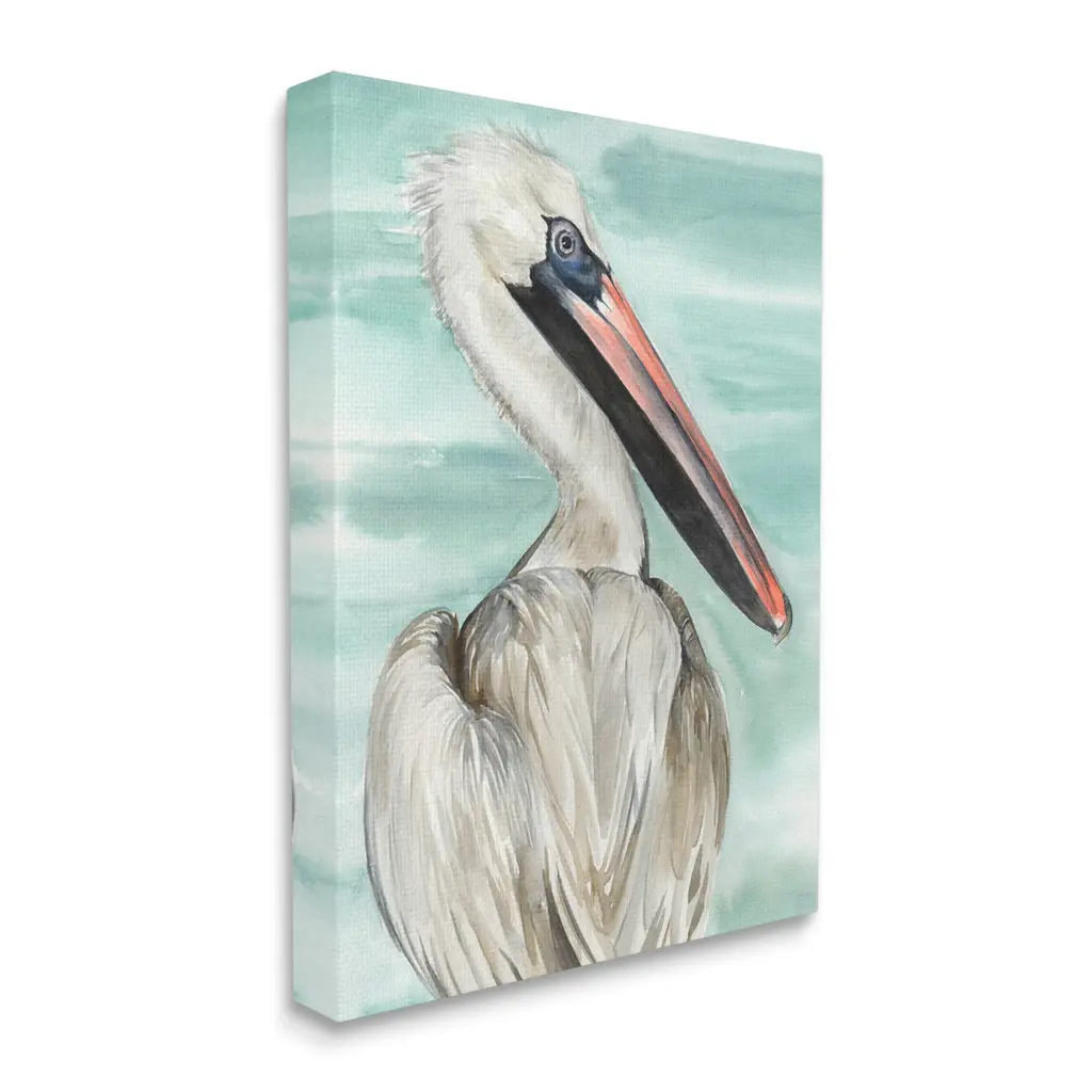 Stupell White Coastal Pelican Watching Calm Water Sea Painting Canvas Wall Art - 24 X 30