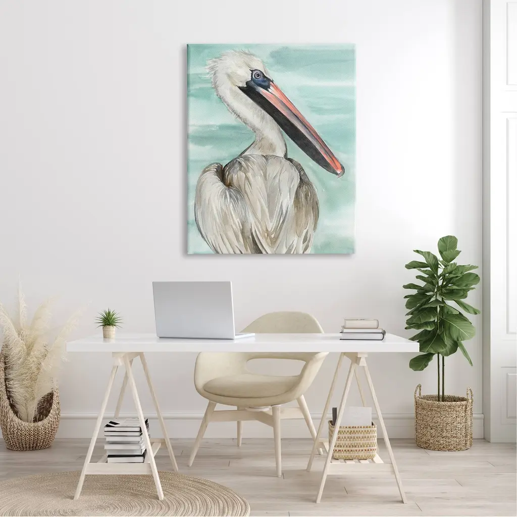 Stupell White Coastal Pelican Watching Calm Water Sea Painting Canvas Wall Art - 36 X 48