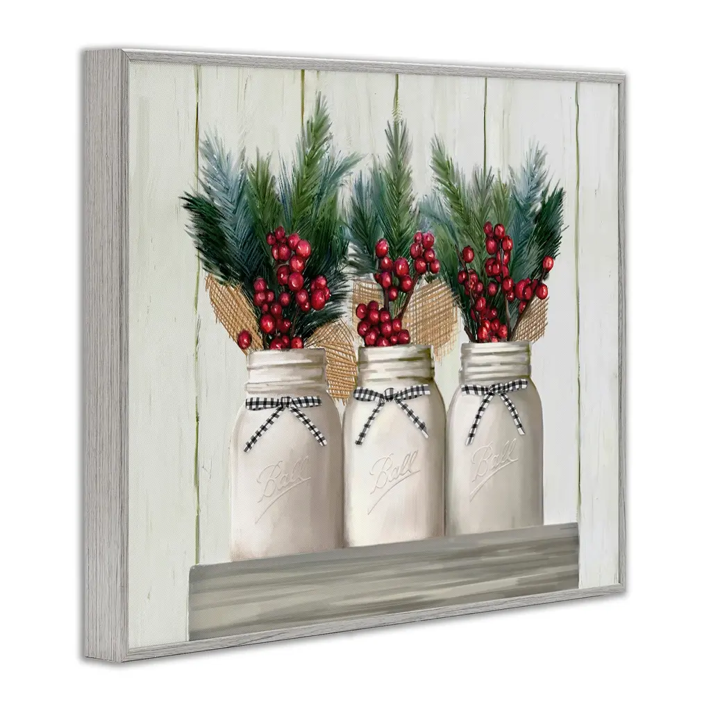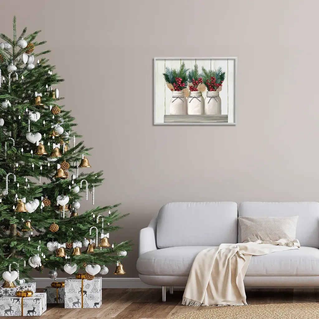 Stupell White Country Jars With Christmas Berry Bouquets Framed Wall Art - Multi-Color - 24 X 30 - Grey