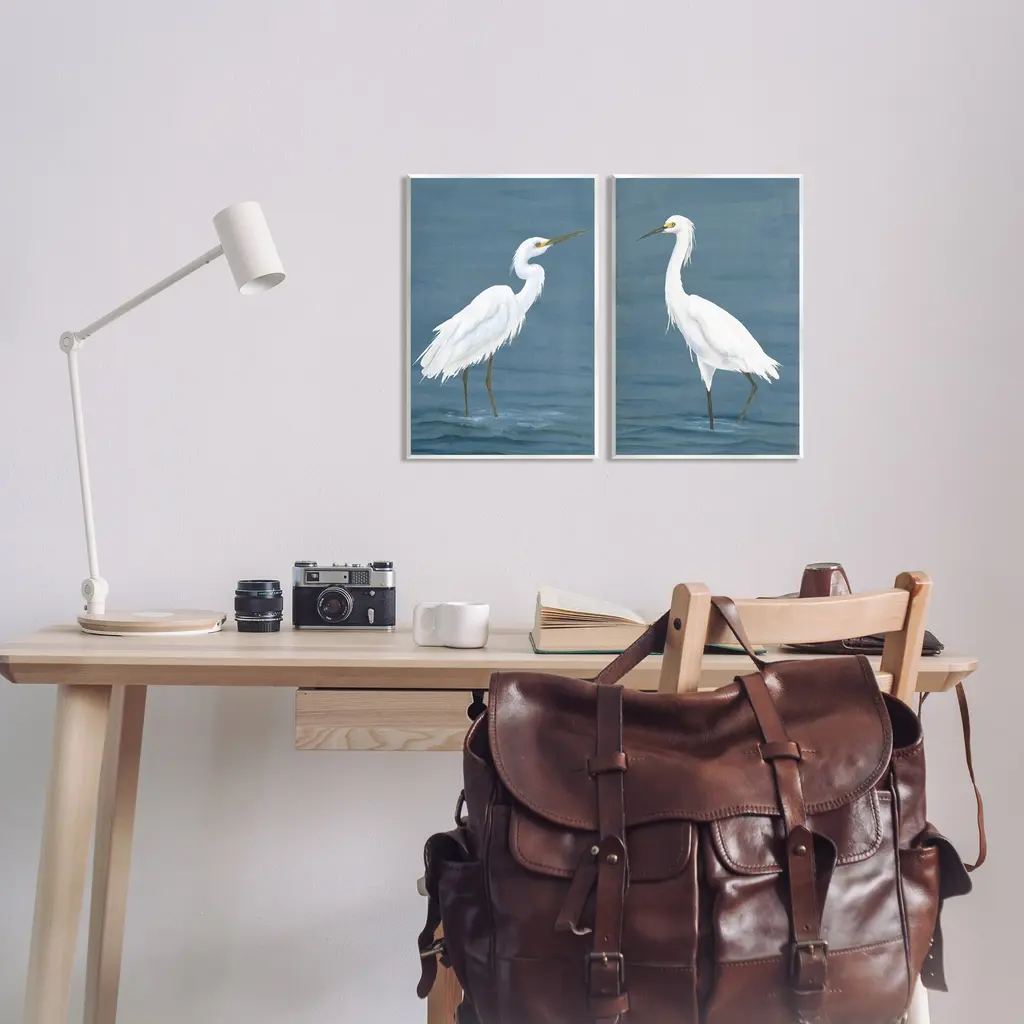 Fill any space with Stupell Wall Art Sets. Our wall plaques start as high-quality lithograph prints mounted on durable 0.5-inch thick MDF wood. Each piece is hand finished and comes with a fresh layer of white foil on the sides to give it a crisp, clean look. Plaques arrive ready to hang without installation and come with removable plastic corners to keep them from damage in transit. Stupell Industries Wall Art is made in the USA.Features: Dimensions: 2 Piece Set, Each Panel is 10 x 0.5 x 15 InchesWall Plaque Set Sizes Include Standard: 2pc, Each is 10 x 0.5 x 15 Oversized: 2pc, Each is 13 x 0.5 x 19Wall Art is Ready to Hang with Hardware Free Hanging. No installation required. For Easy Set Up Lean or Layer Artwork on Shelf or Against Wall.All of our wall plaques start off as high quality lithograph prints that are then mounted on durable 0.5 inch thick MDF wood. Each piece is hand finished and comes with a fresh layer of foil on the sides to give it a crisp clean look. Made In USA.Artwork Relates To: Animal, Bird, Waterfowl, Heron, Crane Bird, Egret, StorkDesign by Michael Willett