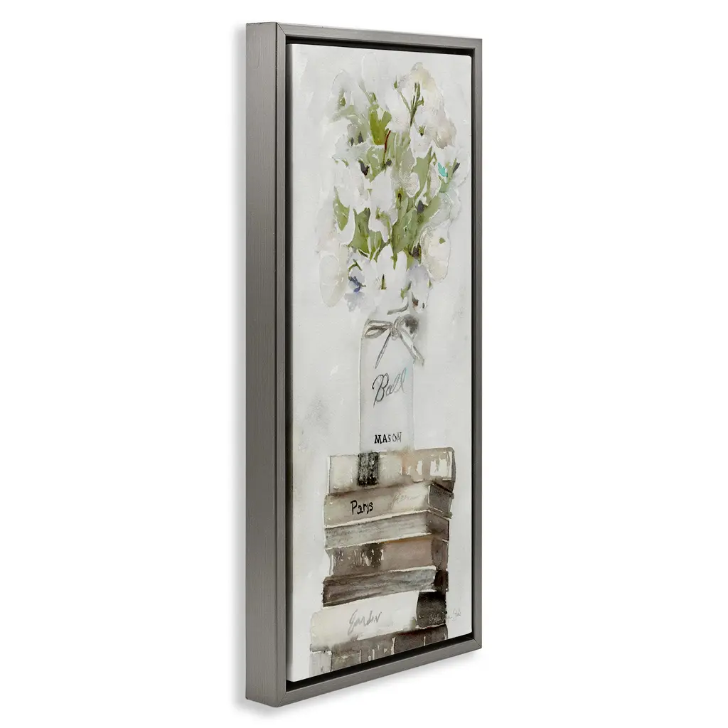 Elevate your home or office to the next level with Stupell Framed Floating Canvas Wall Art. Our premium hand-stretched canvas is mounted securely into a sturdy lightweight frame. The museum-style gap between the wrapped canvas and the box frame gives the illusion of floating artwork. Stupell Wall Art is made in the USA.Features: Dimensions: 11 x 1.7 x 25 Frame, 10 x 1.5 x 24 Canvas ArtFloating Frame Canvas Products are available in sizes 11"x25" and 14"x31". All Floating Frame Canvas Products have a 1.7" Depth.Wall Art is Ready to Hang with Hardware Free Hanging. No Installation required. For Easy Set Up Lean or Layer Artwork on Shelf or Against Wall. Artwork is Permently Fixed into the Frame.Our elevated 1.7" Thick Floating Frame is the perfect complement to our canvas style Wall Art. We use only the highest quality inks in house with industry leading printing solutions. Canvas is hand stretched over a durable wood foundation and then mounted securly into a Modern Box Frame. Made in the USA.Artwork Relates To: Flower, Floral, Bouquet, Country, Sill Life, BooksDesign by Stellar Design Studio