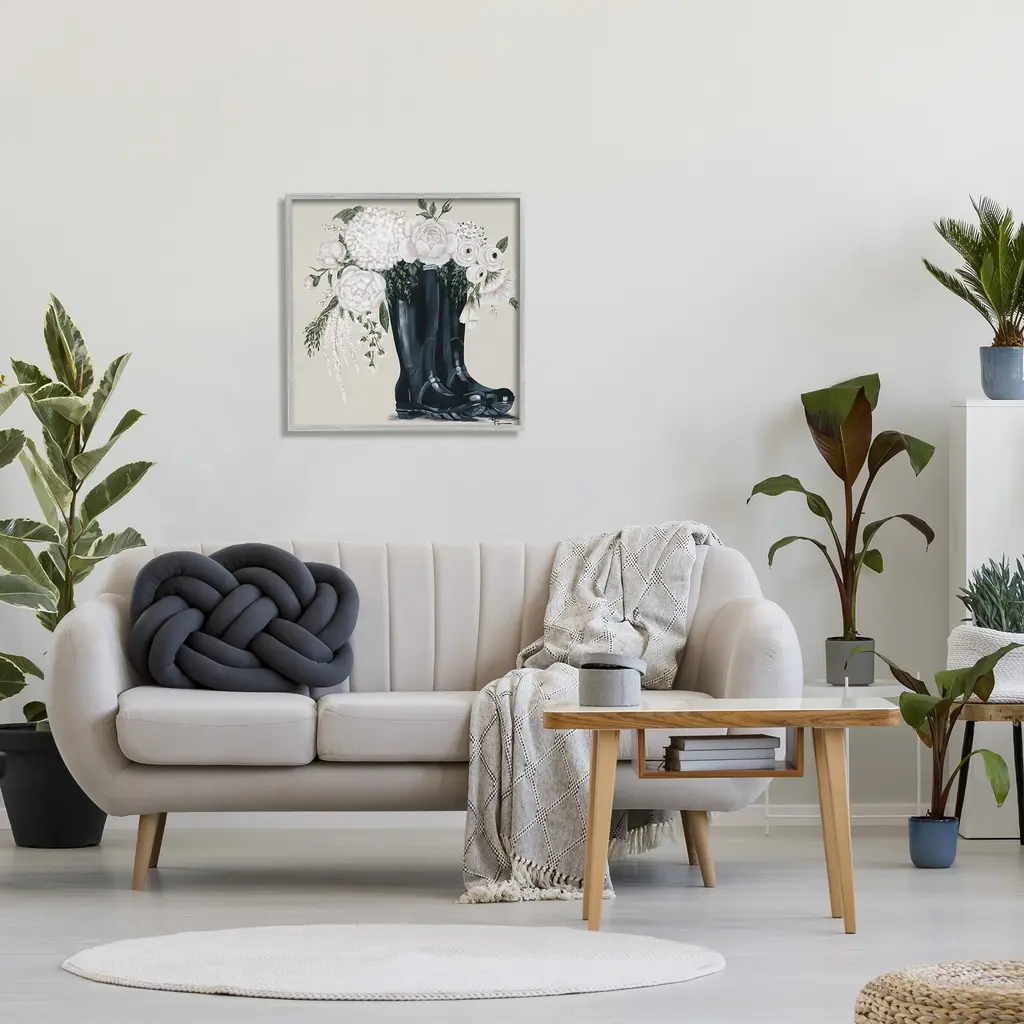 Stupell White Flower Arrangement In Black Boots Painting, 12 X 12, Proudly Made In Usa - Multi-Color - 24 X 24 - Wood - Grey
