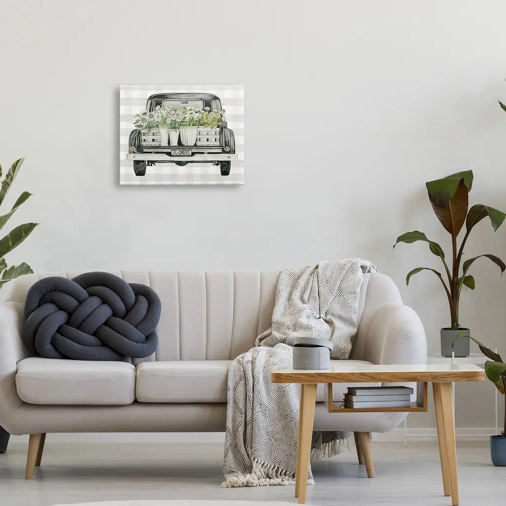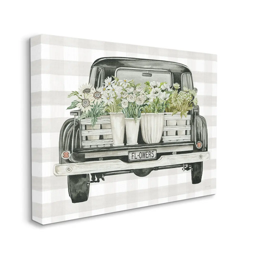 Stupell White Flower Blossoms Farm Truck Country Transportation Canvas Wall Art - Grey - 20 X 16