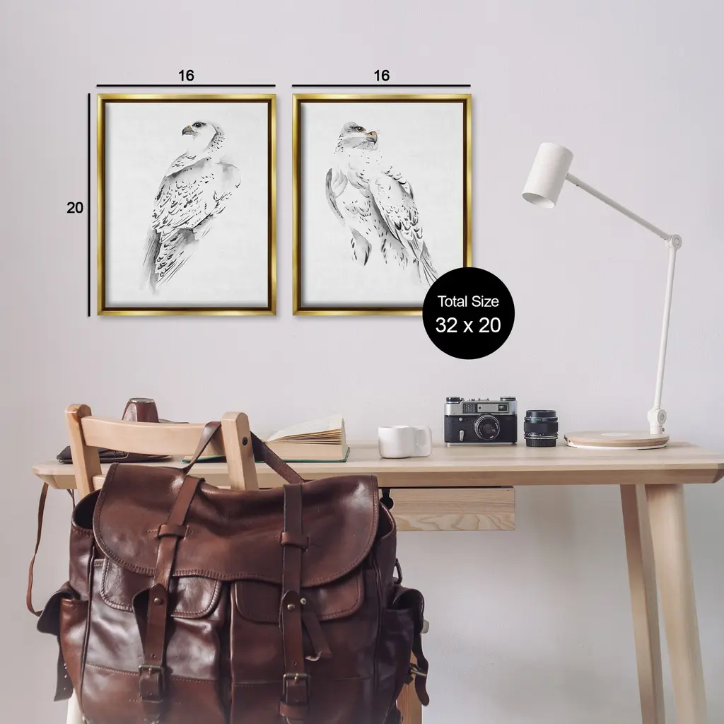 Elevate your home or office to the next level with Stupell Framed Floating Canvas Wall Art. Our premium hand-stretched canvas is mounted securely into a sturdy lightweight frame. The museum-style gap between the wrapped canvas and the box frame gives the illusion of floating artwork. Stupell Wall Art is made in the USA.Features: Dimensions: 2 Piece Set, Each Frame is 17 x 1.7 x 21Two Piece Floater Framed Canvas are available as 17x21 or 25x31 Panels. All Floater Frame Products have a 1.7" Depth.Wall Art is Ready to Hang with Hardware Free Hanging. No Installation required. For Easy Set Up Lean or Layer Artwork on Shelf or Against Wall. Artwork is Permently Fixed into the Frame.Our elevated 1.7" Thick Floating Frame is the perfect complement to our canvas style Wall Art. We use only the highest quality inks in house with industry leading printing solutions. Canvas is hand stretched over a durable wood foundation and then mounted securly into a Modern Box Frame. Made in the USA.Artwork Relates To: Bird, Animal, Drawing, Hawk, MinimalDesign by Melissa Wang