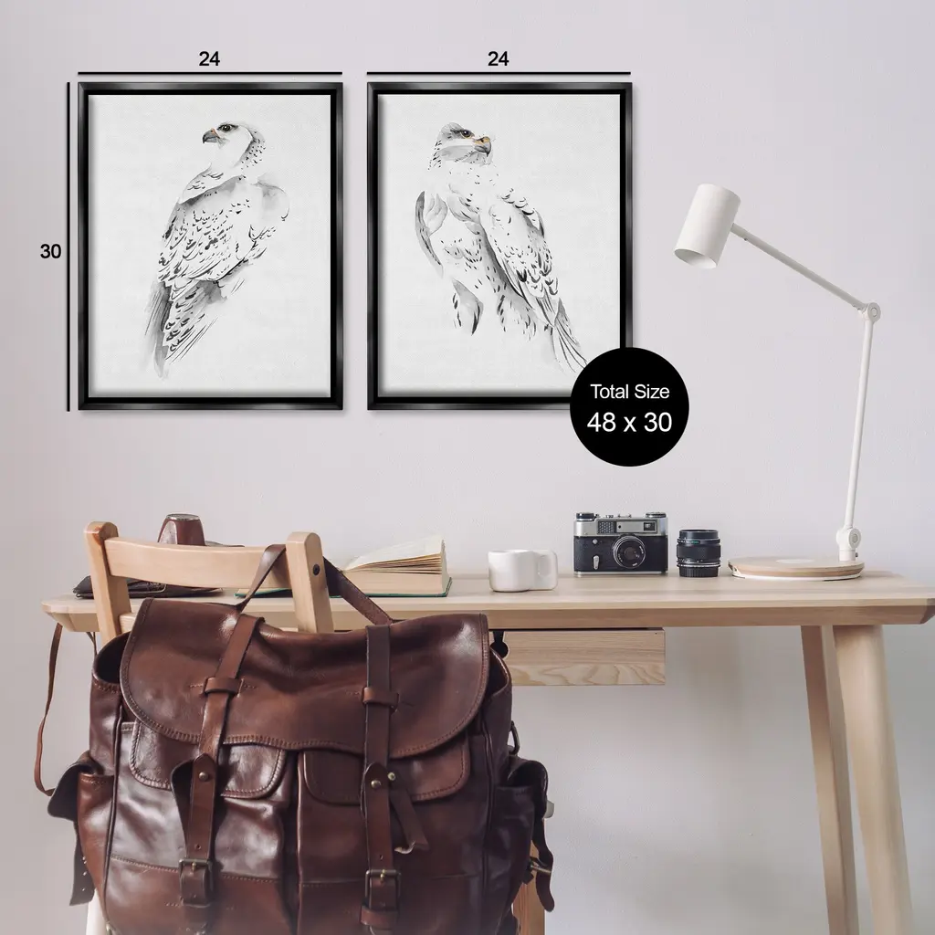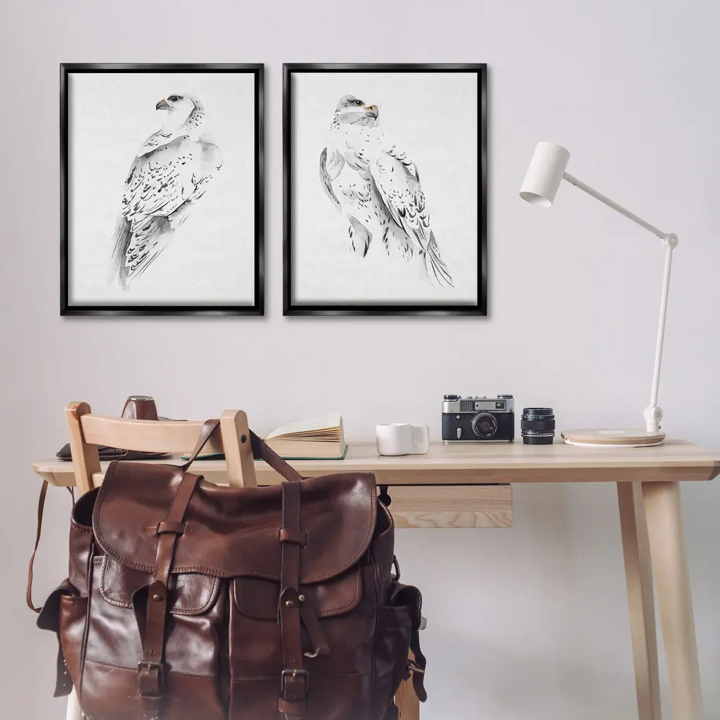 Elevate your home or office to the next level with Stupell Framed Floating Canvas Wall Art. Our premium hand-stretched canvas is mounted securely into a sturdy lightweight frame. The museum-style gap between the wrapped canvas and the box frame gives the illusion of floating artwork. Stupell Wall Art is made in the USA.Features: Dimensions: 2 Piece Set, Each Frame is 17 x 1.7 x 21Two Piece Floater Framed Canvas are available as 17x21 or 25x31 Panels. All Floater Frame Products have a 1.7" Depth.Wall Art is Ready to Hang with Hardware Free Hanging. No Installation required. For Easy Set Up Lean or Layer Artwork on Shelf or Against Wall. Artwork is Permently Fixed into the Frame.Our elevated 1.7" Thick Floating Frame is the perfect complement to our canvas style Wall Art. We use only the highest quality inks in house with industry leading printing solutions. Canvas is hand stretched over a durable wood foundation and then mounted securly into a Modern Box Frame. Made in the USA.Artwork Relates To: Bird, Animal, Drawing, Hawk, MinimalDesign by Melissa Wang