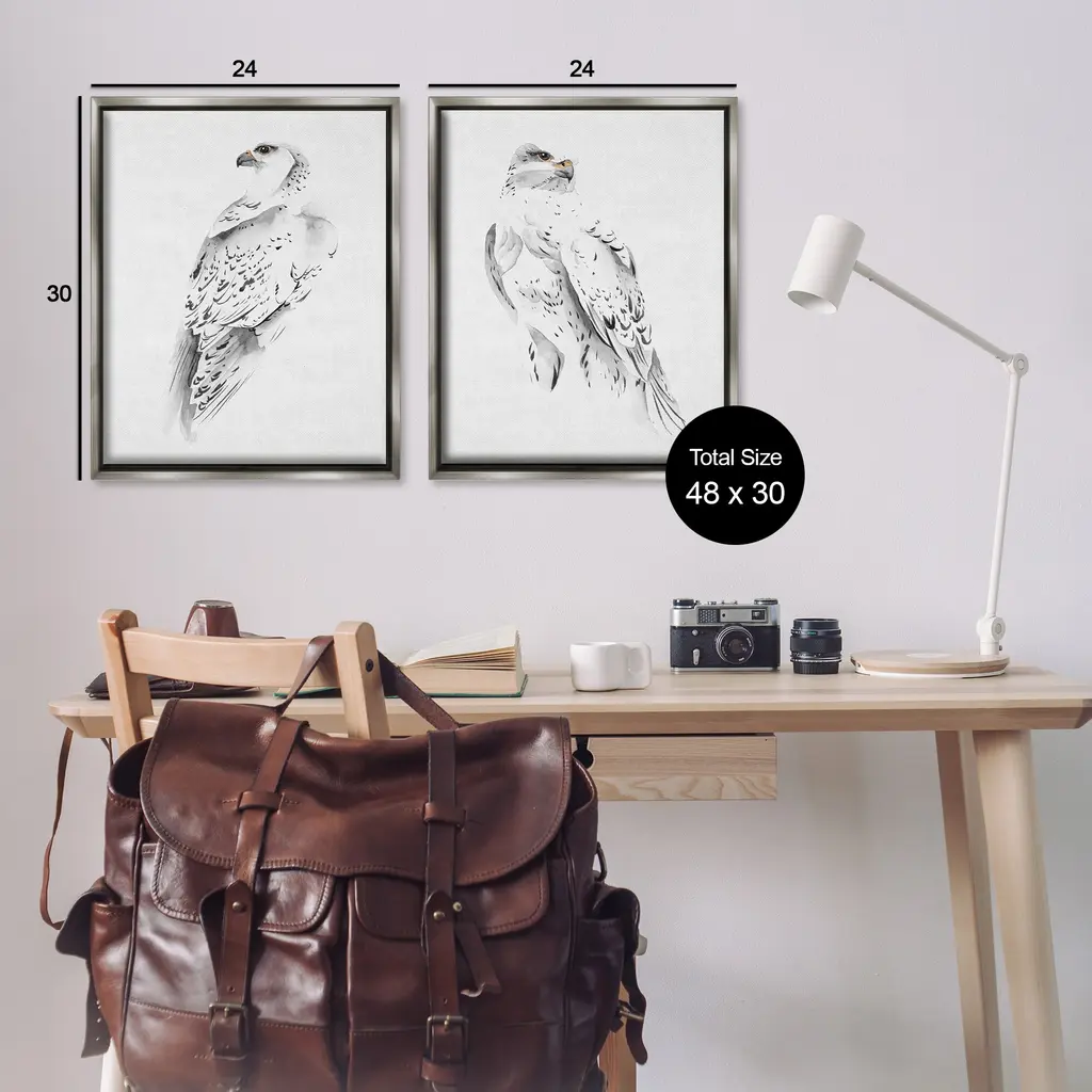 Elevate your home or office to the next level with Stupell Framed Floating Canvas Wall Art. Our premium hand-stretched canvas is mounted securely into a sturdy lightweight frame. The museum-style gap between the wrapped canvas and the box frame gives the illusion of floating artwork. Stupell Wall Art is made in the USA.Features: Dimensions: 2 Piece Set, Each Frame is 17 x 1.7 x 21Two Piece Floater Framed Canvas are available as 17x21 or 25x31 Panels. All Floater Frame Products have a 1.7" Depth.Wall Art is Ready to Hang with Hardware Free Hanging. No Installation required. For Easy Set Up Lean or Layer Artwork on Shelf or Against Wall. Artwork is Permently Fixed into the Frame.Our elevated 1.7" Thick Floating Frame is the perfect complement to our canvas style Wall Art. We use only the highest quality inks in house with industry leading printing solutions. Canvas is hand stretched over a durable wood foundation and then mounted securly into a Modern Box Frame. Made in the USA.Artwork Relates To: Bird, Animal, Drawing, Hawk, MinimalDesign by Melissa Wang
