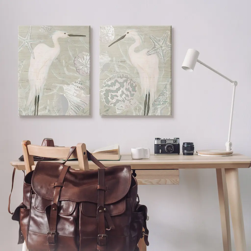 Stupell White Heron Nautical Seashells Rustic Starfish Wildlife 2 Piece Canvas Wall Art, Design By June Erica Vess - 24 X 30