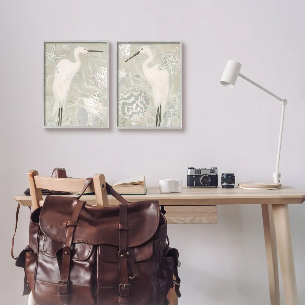 Stupell White Heron Nautical Seashells Rustic Starfish Wildlife 2 Piece Framed Wall Art, Design By June Erica Vess - Beige - 11 X 14 - Grey