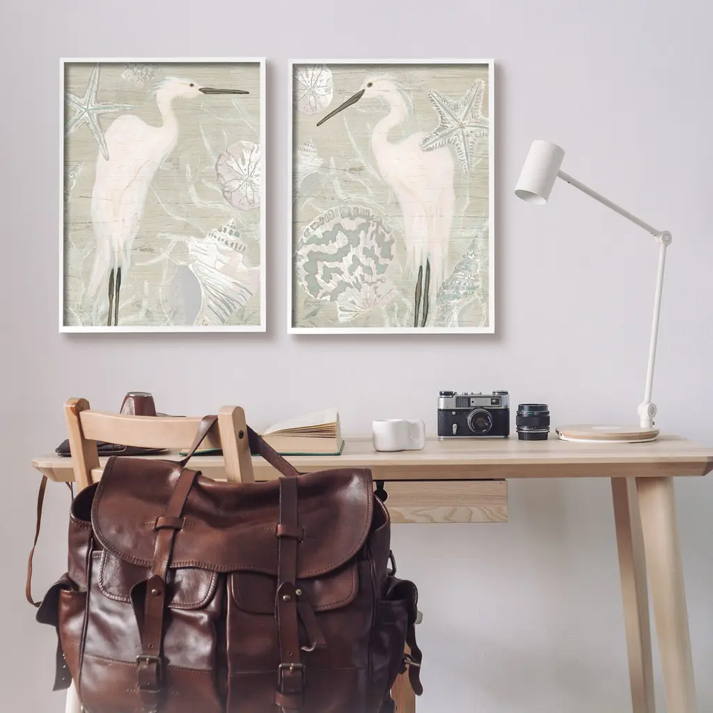 Stupell White Heron Nautical Seashells Rustic Starfish Wildlife 2 Piece Framed Wall Art, Design By June Erica Vess - Beige - 24 X 30 - White