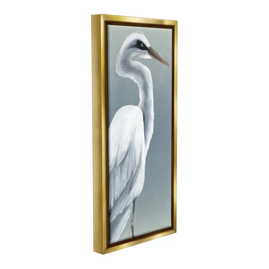 Stupell White Heron Portrait Framed Floater Canvas Wall Art Design By Grace Popp - 14 X 31 - Gold