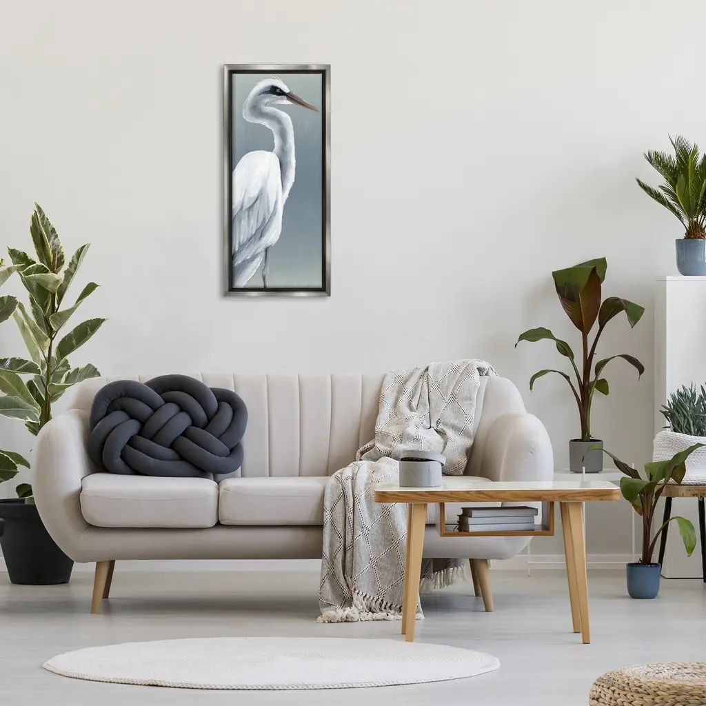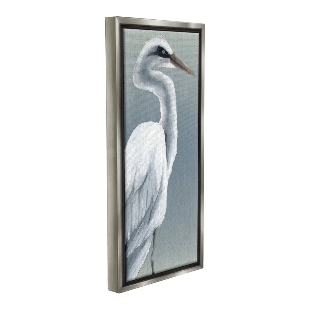 Elevate your home or office to the next level with Stupell Framed Floating Canvas Wall Art. Our premium hand-stretched canvas is mounted securely into a sturdy lightweight frame. The museum-style gap between the wrapped canvas and the box frame gives the illusion of floating artwork. Stupell Wall Art is made in the USA.Features: Dimensions: 11 x 1.7 x 25 Frame, 10 x 1.5 x 24 Canvas ArtFloating Frame Canvas Products are available in sizes 11"x25" and 14"x31". All Floating Frame Canvas Products have a 1.7" Depth.Wall Art is Ready to Hang with Hardware Free Hanging. No Installation required. For Easy Set Up Lean or Layer Artwork on Shelf or Against Wall. Artwork is Permently Fixed into the Frame.Our elevated 1.7" Thick Floating Frame is the perfect complement to our canvas style Wall Art. We use only the highest quality inks in house with industry leading printing solutions. Canvas is hand stretched over a durable wood foundation and then mounted securly into a Modern Box Frame. Made in the USA.Artwork Relates To: Animal, Bird, Waterfowl, Crane Bird, Heron, Egret, Nautical, Beach, TraditionalDesign by Grace Popp
