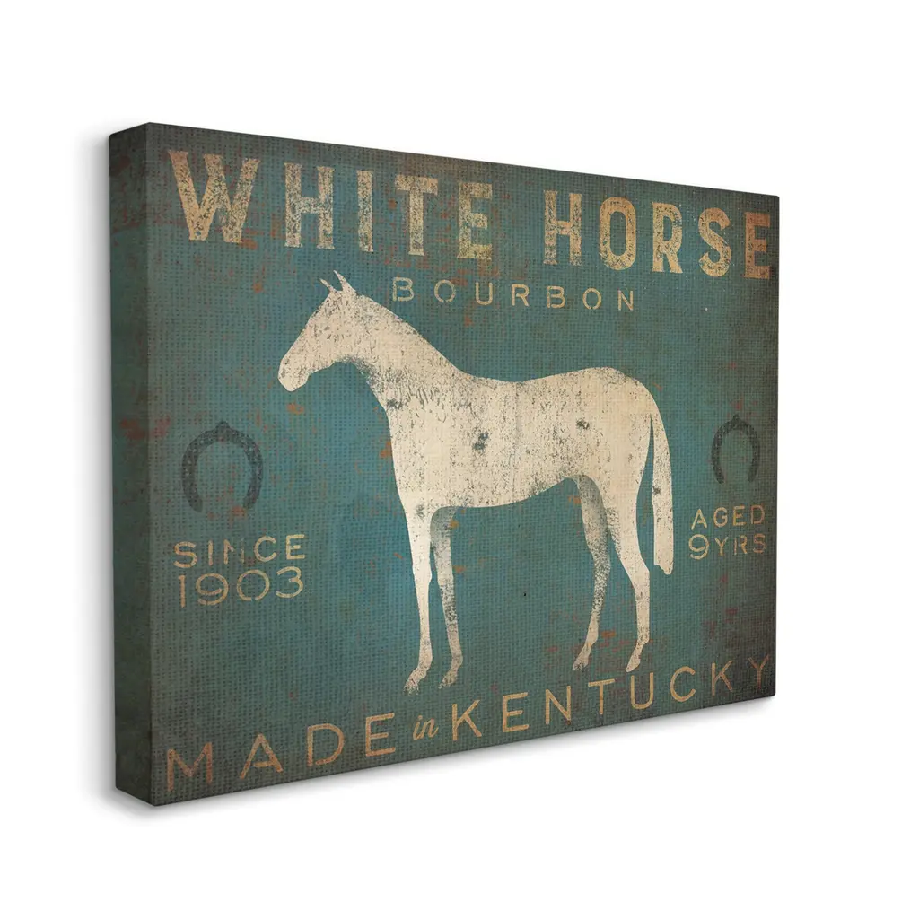 Stupell White Horse Bourbon Vintage Sign Stretched Canvas Wall Art, Design By Ryan Fowler - 20 X 16