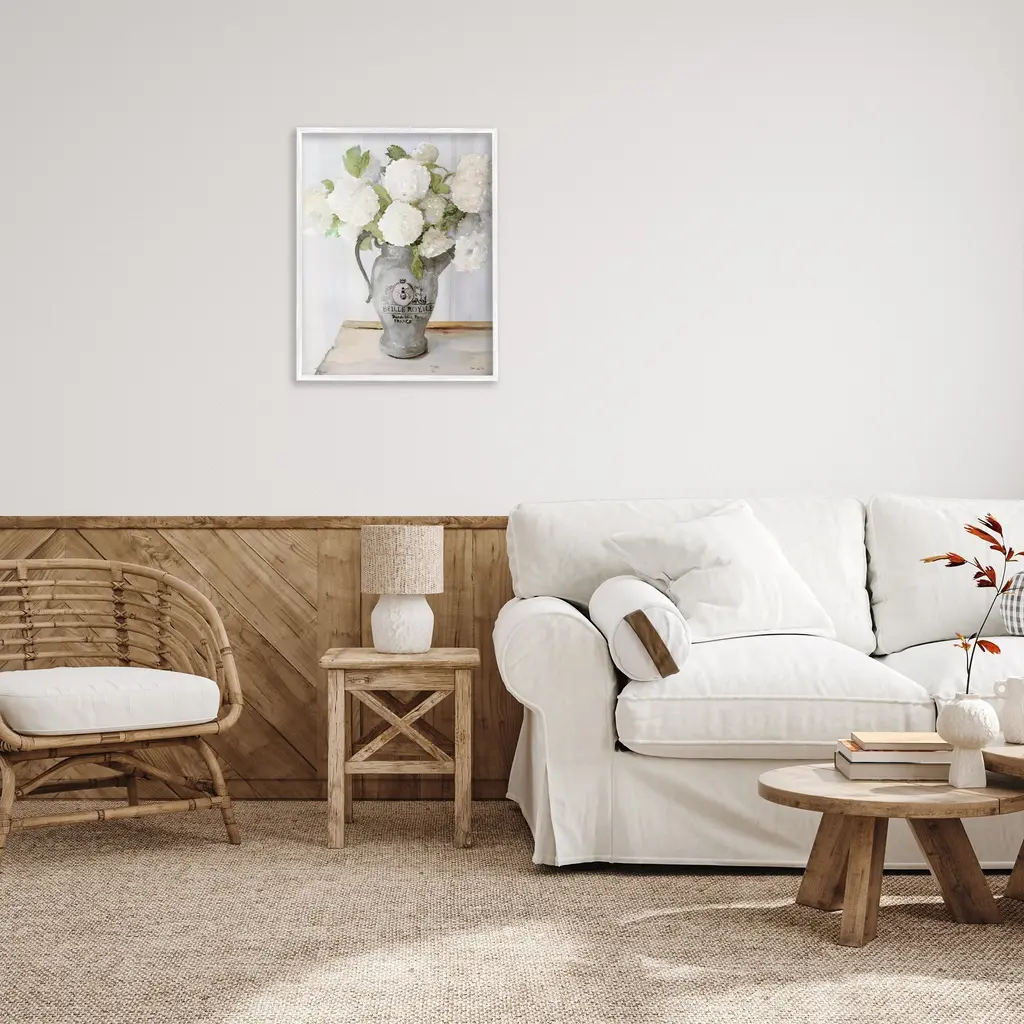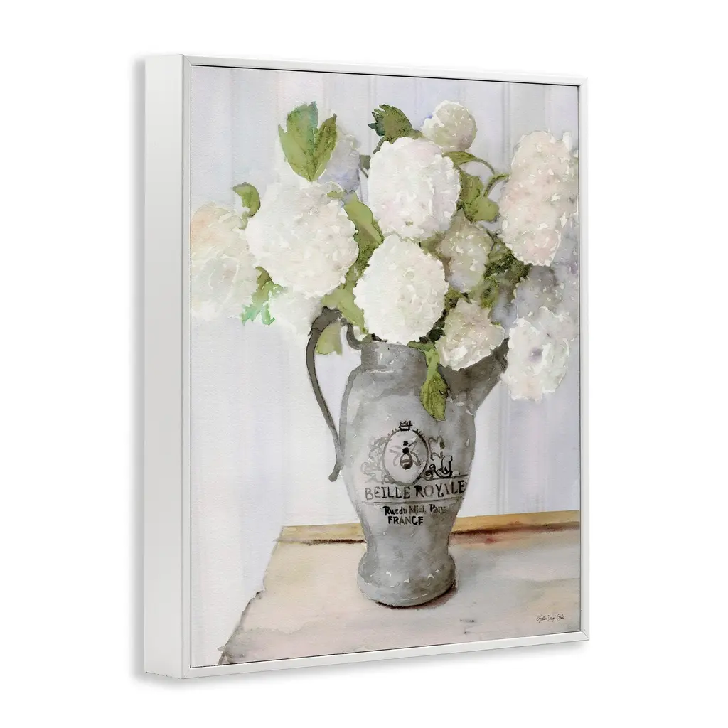 Stupell White Hydrangea In French Country Pitcher Still Life Framed Wall Art - Multi-Color - 24 X 30 - White