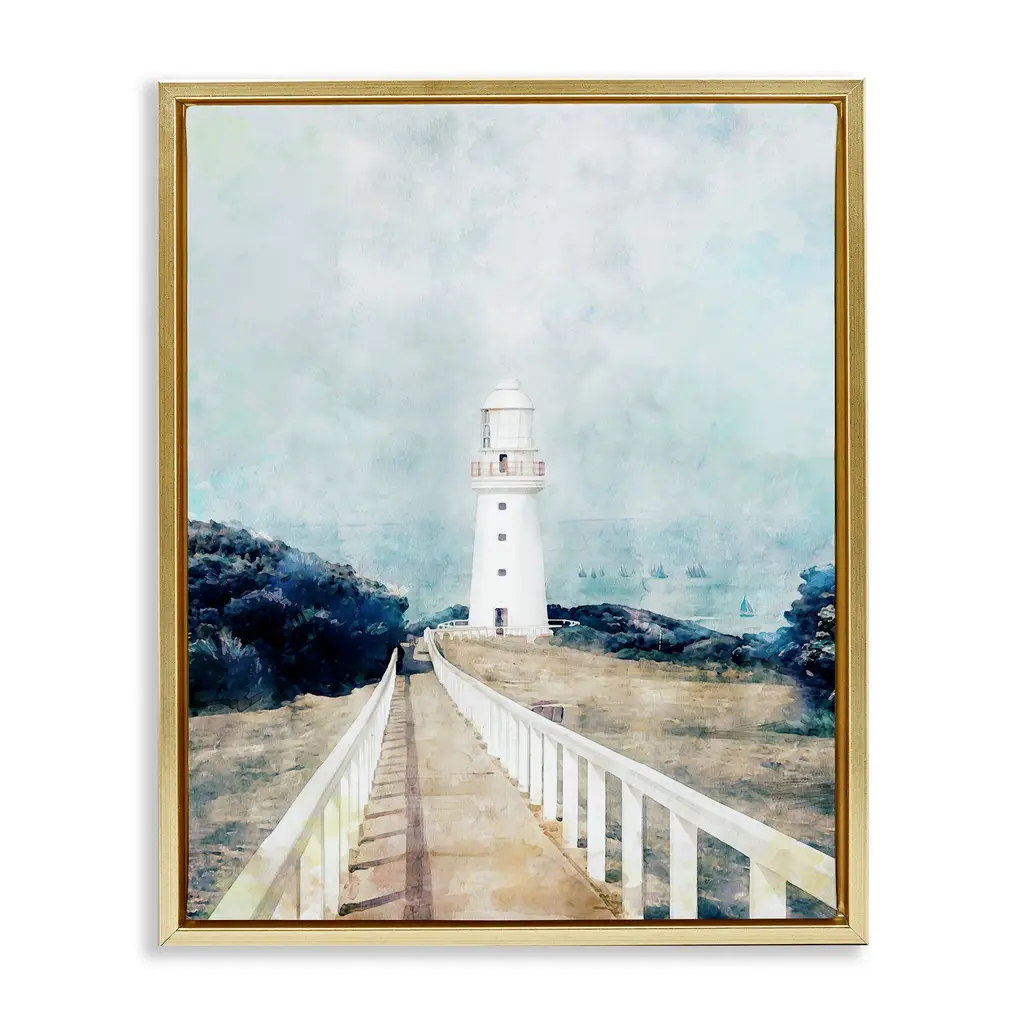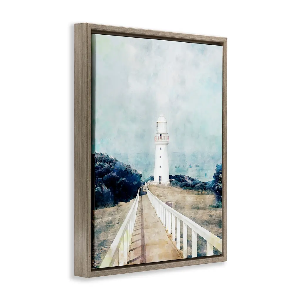 Elevate your home or office to the next level with Stupell Framed Floating Canvas Wall Art. Our premium hand-stretched canvas is mounted securely into a sturdy lightweight frame. The museum-style gap between the wrapped canvas and the box frame gives the illusion of floating artwork. Stupell Wall Art is made in the USA.Features: Dimensions: 17 x 1.7 x 21 Frame, 16 x 1.5 x 20 Canvas ArtFloating Frame Canvas Products are available in sizes 17"x21" and 25"x31". All Floating Frame Canvas Products have a 1.7" Depth.Wall Art is Ready to Hang with Hardware Free Hanging. No Installation required. For Easy Set Up Lean or Layer Artwork on Shelf or Against Wall. Artwork is Permently Fixed into the Frame.Our elevated 1.7" Thick Floating Frame is the perfect complement to our canvas style Wall Art. We use only the highest quality inks in house with industry leading printing solutions. Canvas is hand stretched over a durable wood foundation and then mounted securly into a Modern Box Frame. Made in the USA.Artwork Relates To: Lighthouse, Tower, Beacon, Painting, Nautical, BeachDesign by Ziwei Li
