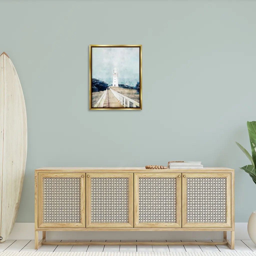 Elevate your home or office to the next level with Stupell Framed Floating Canvas Wall Art. Our premium hand-stretched canvas is mounted securely into a sturdy lightweight frame. The museum-style gap between the wrapped canvas and the box frame gives the illusion of floating artwork. Stupell Wall Art is made in the USA.Features: Dimensions: 17 x 1.7 x 21 Frame, 16 x 1.5 x 20 Canvas ArtFloating Frame Canvas Products are available in sizes 17"x21" and 25"x31". All Floating Frame Canvas Products have a 1.7" Depth.Wall Art is Ready to Hang with Hardware Free Hanging. No Installation required. For Easy Set Up Lean or Layer Artwork on Shelf or Against Wall. Artwork is Permently Fixed into the Frame.Our elevated 1.7" Thick Floating Frame is the perfect complement to our canvas style Wall Art. We use only the highest quality inks in house with industry leading printing solutions. Canvas is hand stretched over a durable wood foundation and then mounted securly into a Modern Box Frame. Made in the USA.Artwork Relates To: Lighthouse, Tower, Beacon, Painting, Nautical, BeachDesign by Ziwei Li