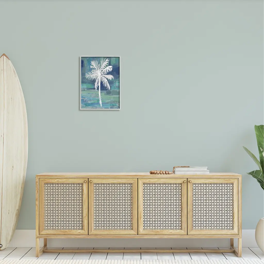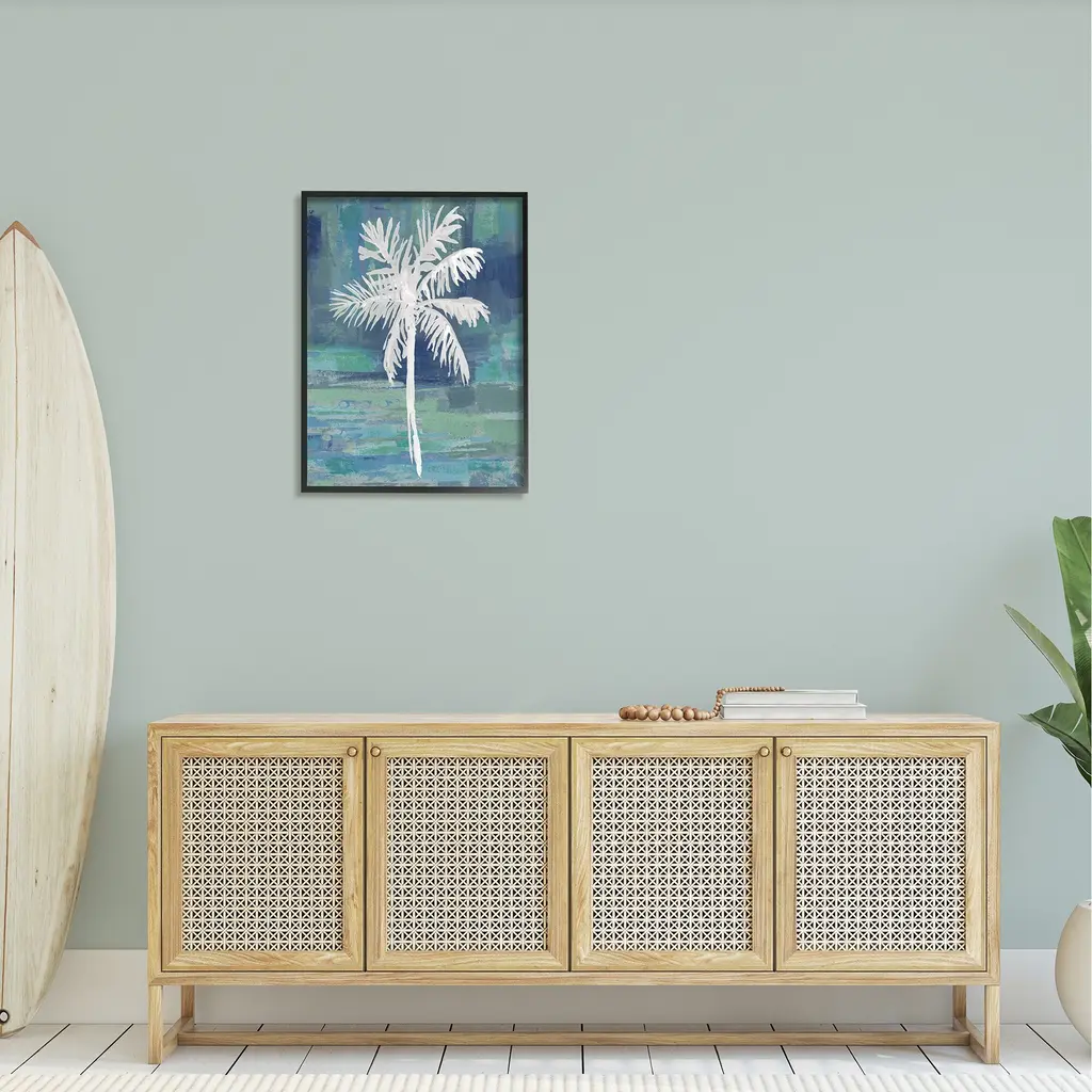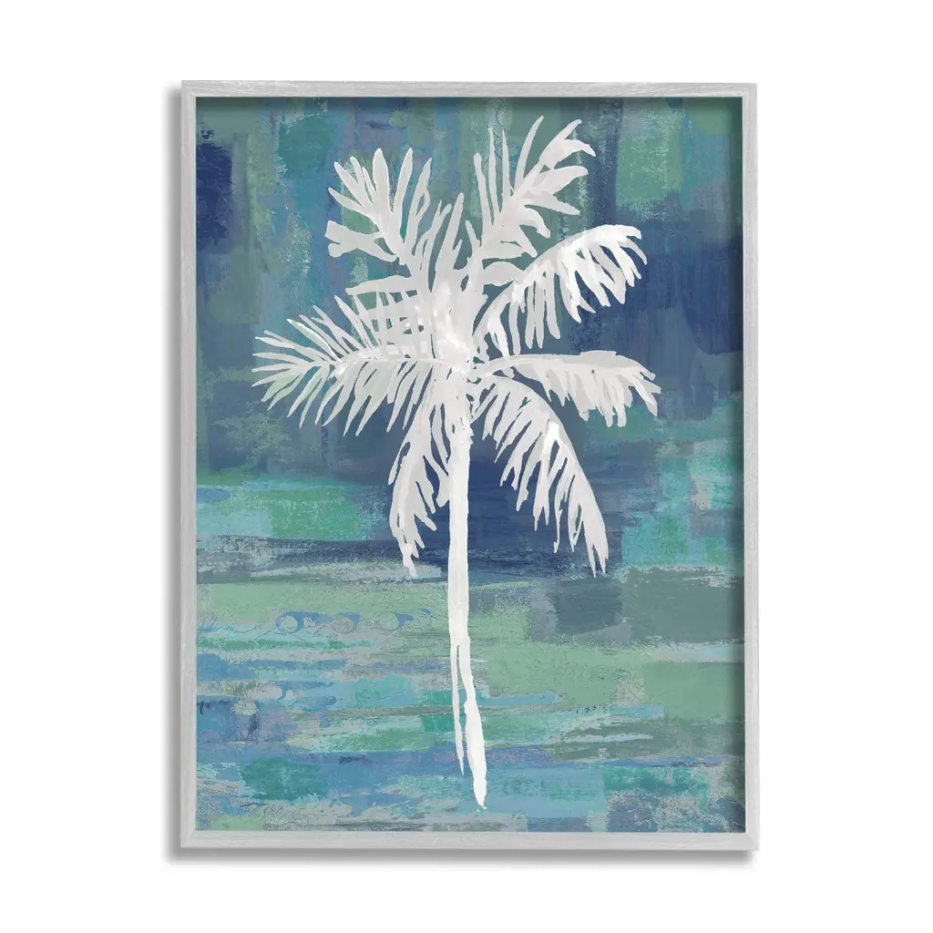 Stupell White Palm Tree Leaves Abstract Green Background Framed Wall Art - Blue - 11 X 14 - Black