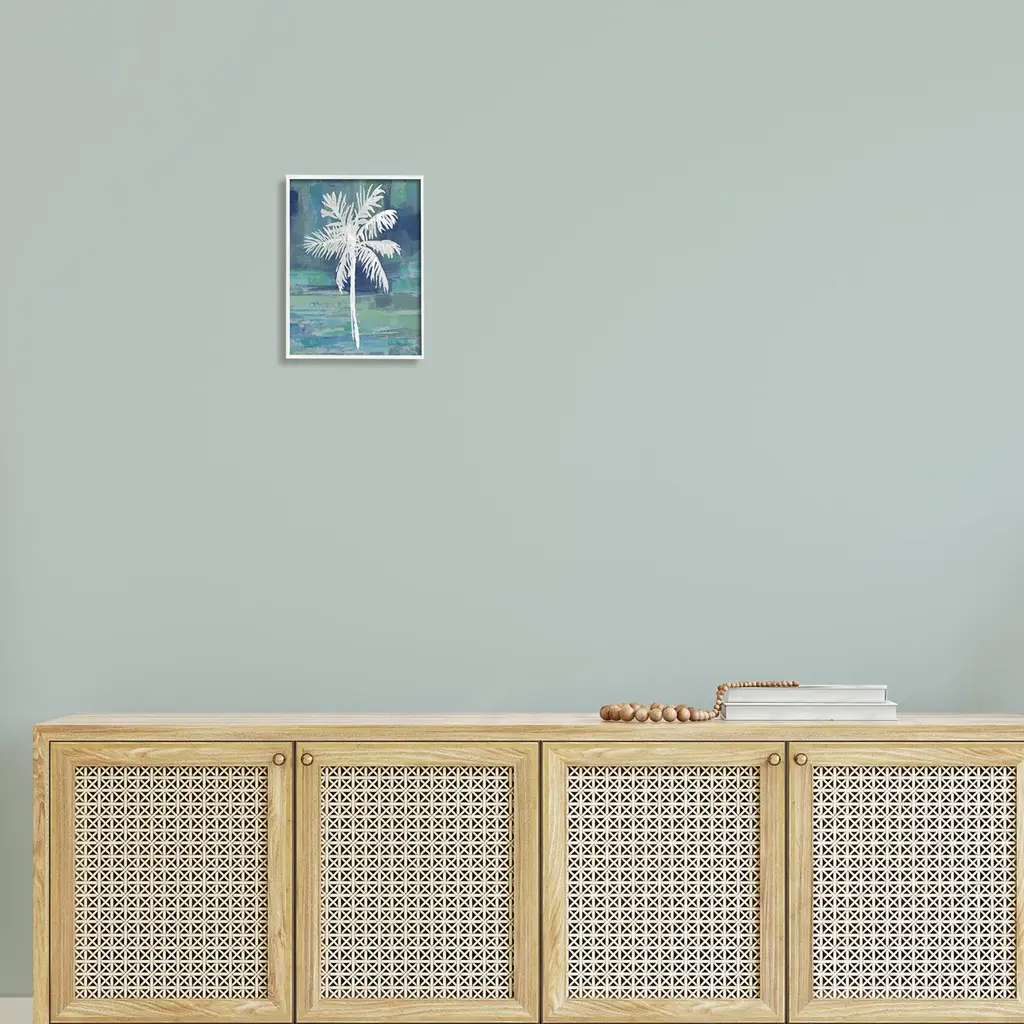 Stupell White Palm Tree Leaves Abstract Green Background Framed Wall Art - Blue - 11 X 14 - White