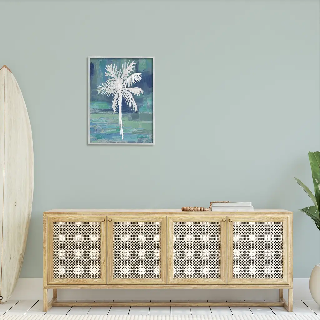 Stupell White Palm Tree Leaves Abstract Green Background Framed Wall Art - Blue - 24 X 30 - Grey