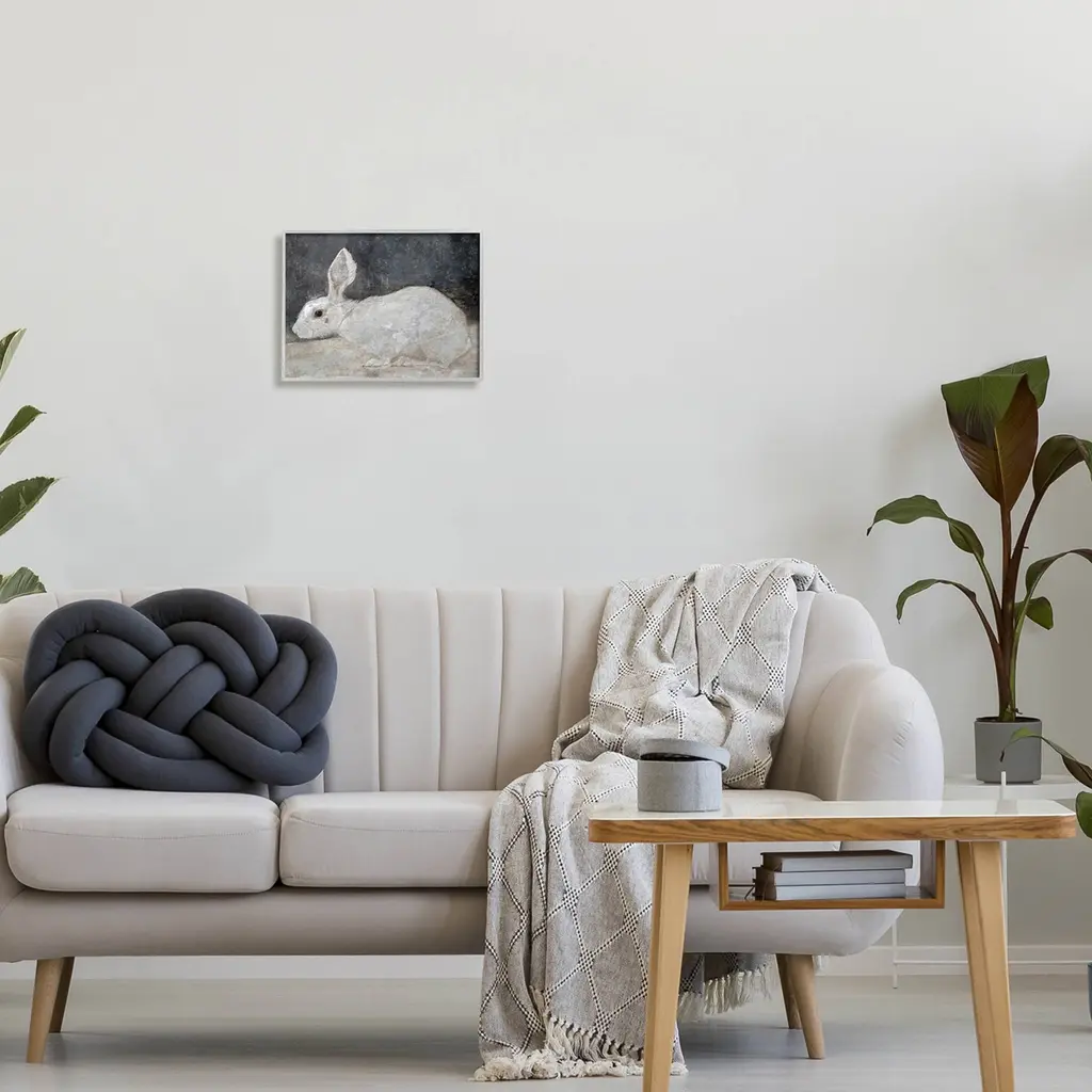 Our Framed Giclee Wall Art adds a touch of class to any space in your home or office. Frames are available in three alluring styles: black, gray farmhouse and white. Our textured artwork will add more depth and dimension to any space. Each piece is mounted with a 1.5 inch thick wood grain frame that is ready to hang! Looking for a statement piece? We have oversized artwork available.Features: Dimensions: 14 x 1.5 x 11 FramedFramed Giclee Sizes Include Standard: 14 x 1.5 x 11 Large: 20 x 1.5 x 16 Oversized: 30 x 1.5 x 24Wall Art is Ready to Hang - No Installation or Hardware Needed. For Easy Set Up Lean or Layer Artwork on Shelf or Against Wall.Our giclée prints are carefully mounted on a durable MDF backing, and then perfectly finished in a 1.5 inch thick woodgrain frame. Mounted frame colors include black, gray farmhouse and white. Made In USA.Artwork Relates To: Painting, Mammal, Animal, Rabbit, HareDesign by Lettered and Lined