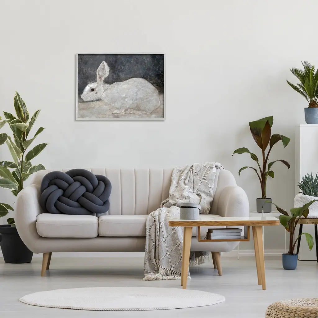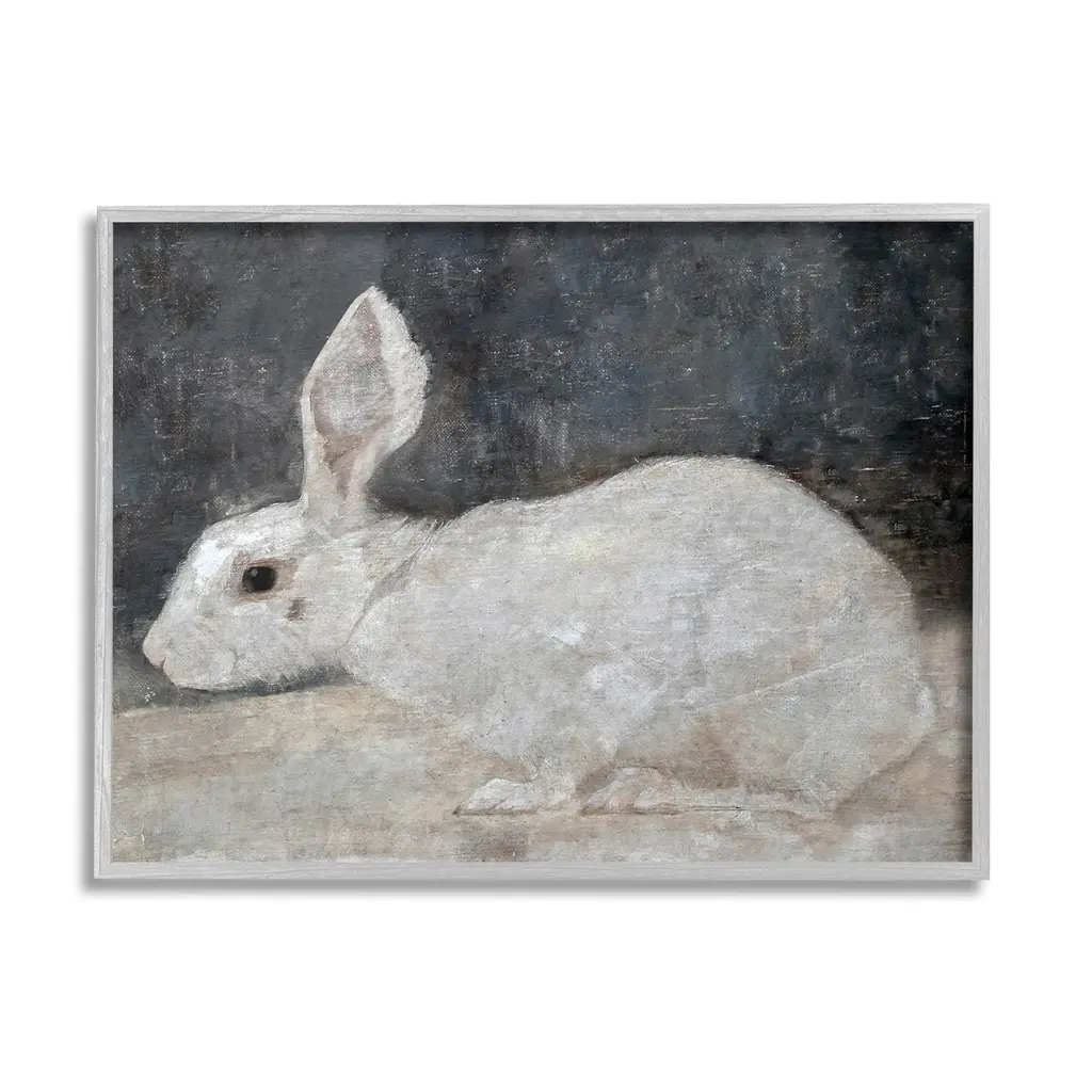 Our Framed Giclee Wall Art adds a touch of class to any space in your home or office. Frames are available in three alluring styles: black, gray farmhouse and white. Our textured artwork will add more depth and dimension to any space. Each piece is mounted with a 1.5 inch thick wood grain frame that is ready to hang! Looking for a statement piece? We have oversized artwork available.Features: Dimensions: 14 x 1.5 x 11 FramedFramed Giclee Sizes Include Standard: 14 x 1.5 x 11 Large: 20 x 1.5 x 16 Oversized: 30 x 1.5 x 24Wall Art is Ready to Hang - No Installation or Hardware Needed. For Easy Set Up Lean or Layer Artwork on Shelf or Against Wall.Our giclée prints are carefully mounted on a durable MDF backing, and then perfectly finished in a 1.5 inch thick woodgrain frame. Mounted frame colors include black, gray farmhouse and white. Made In USA.Artwork Relates To: Painting, Mammal, Animal, Rabbit, HareDesign by Lettered and Lined