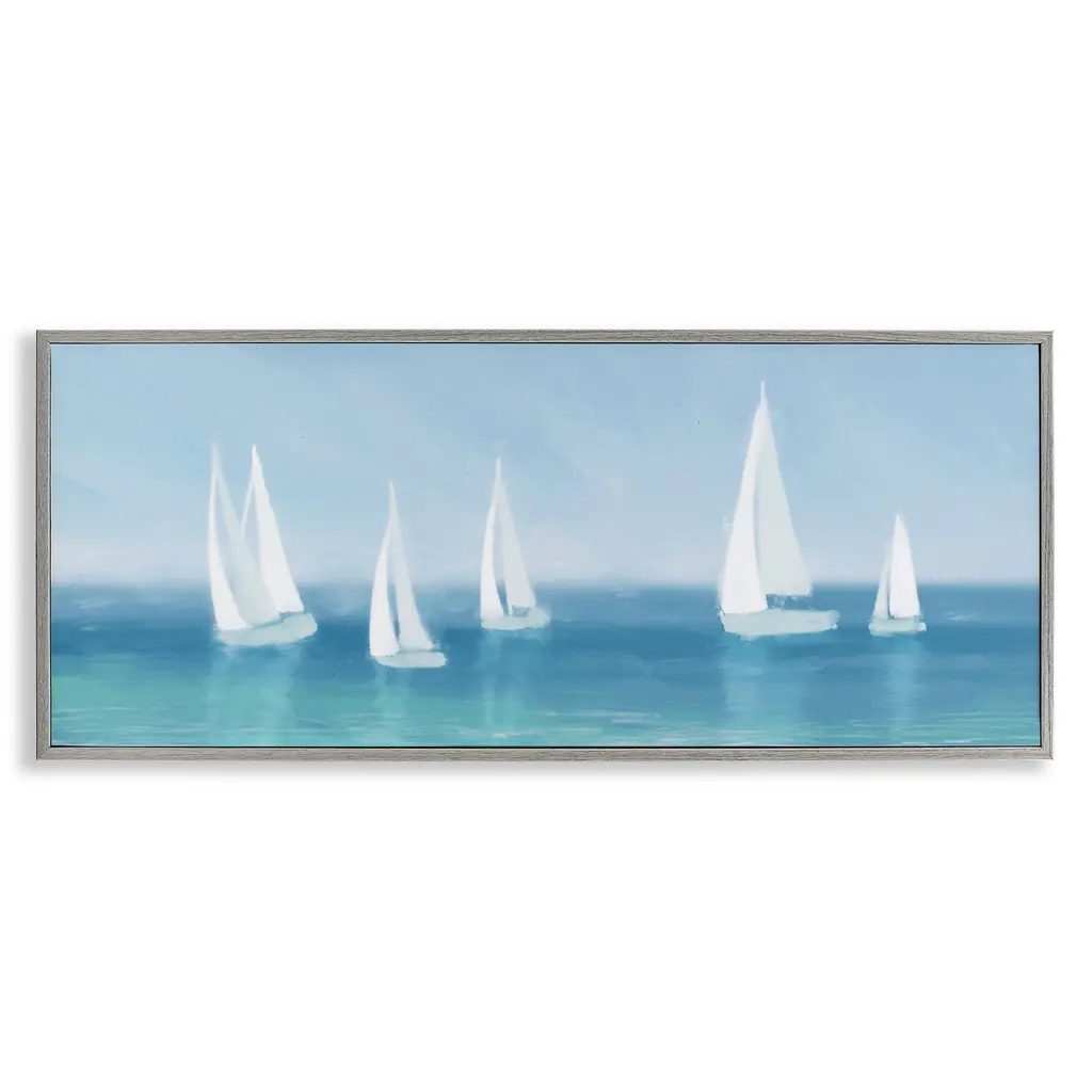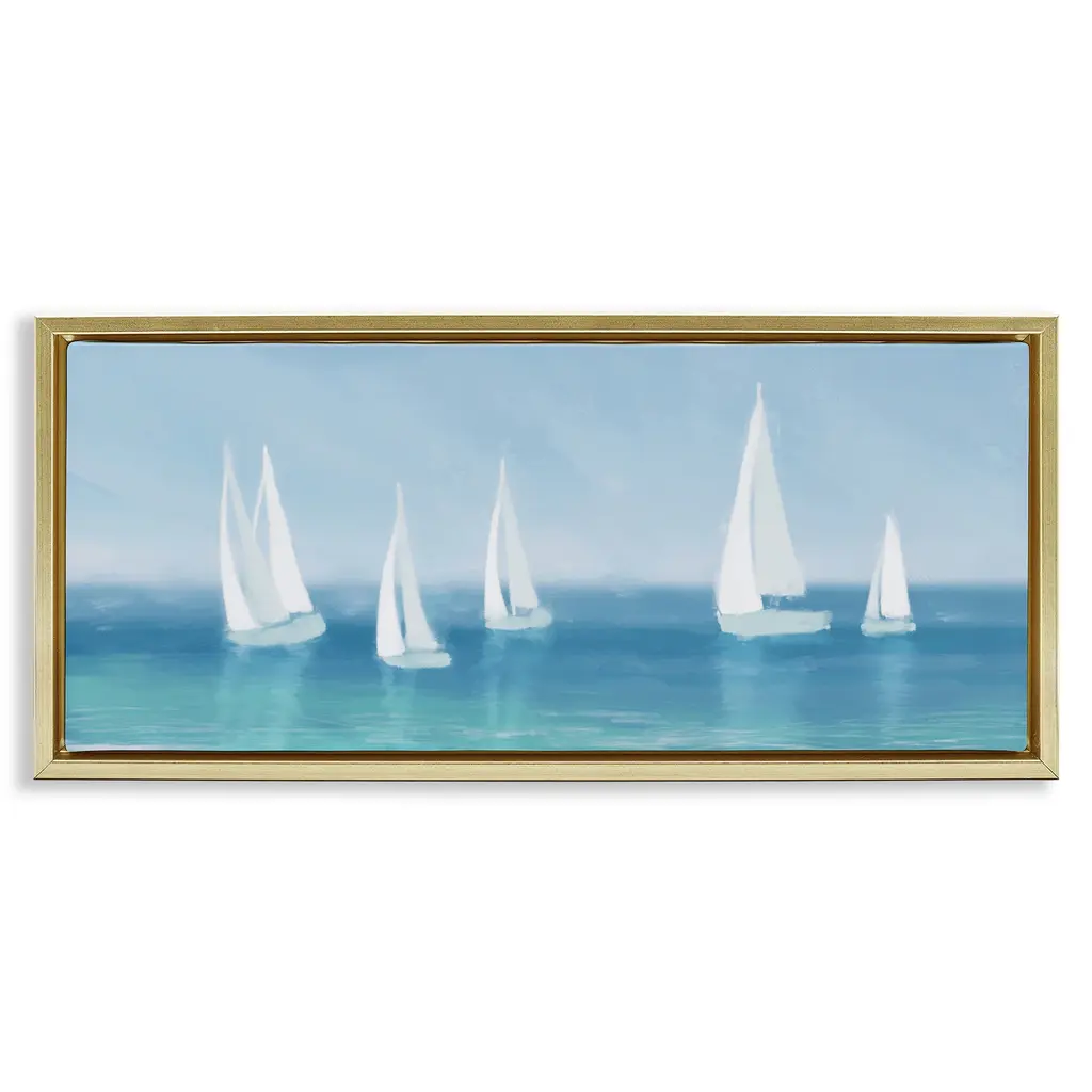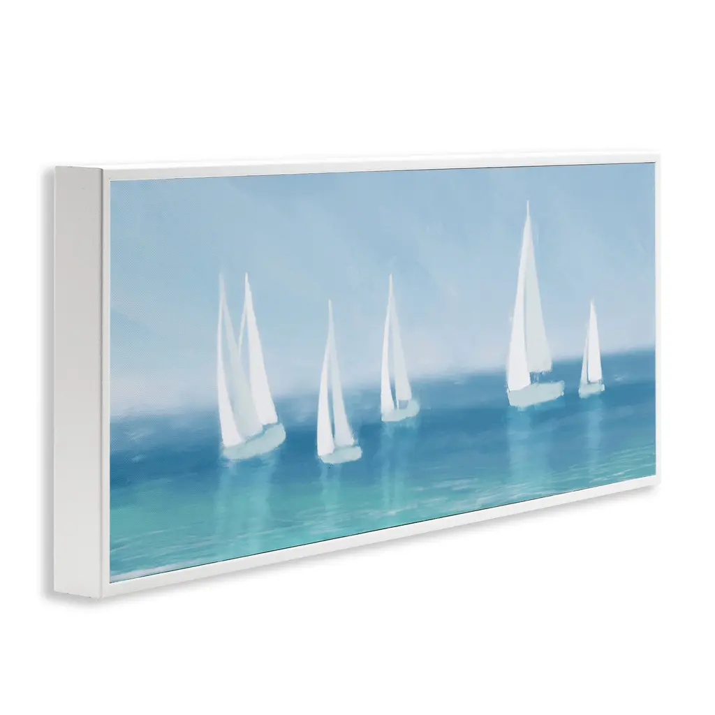 Stupell White Sail Boats Across Coast Framed Giclee Art Design By Dan Meneely - 24 X 10 - White