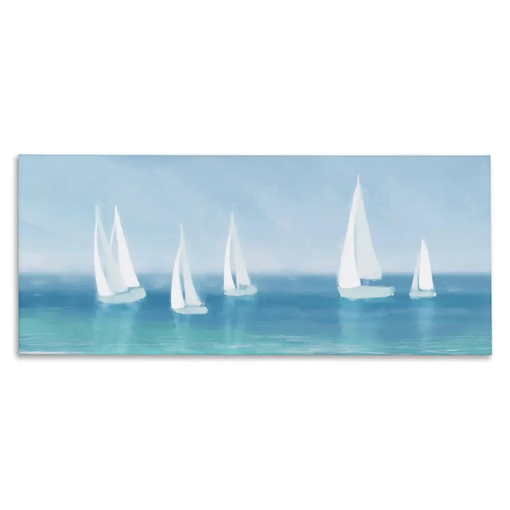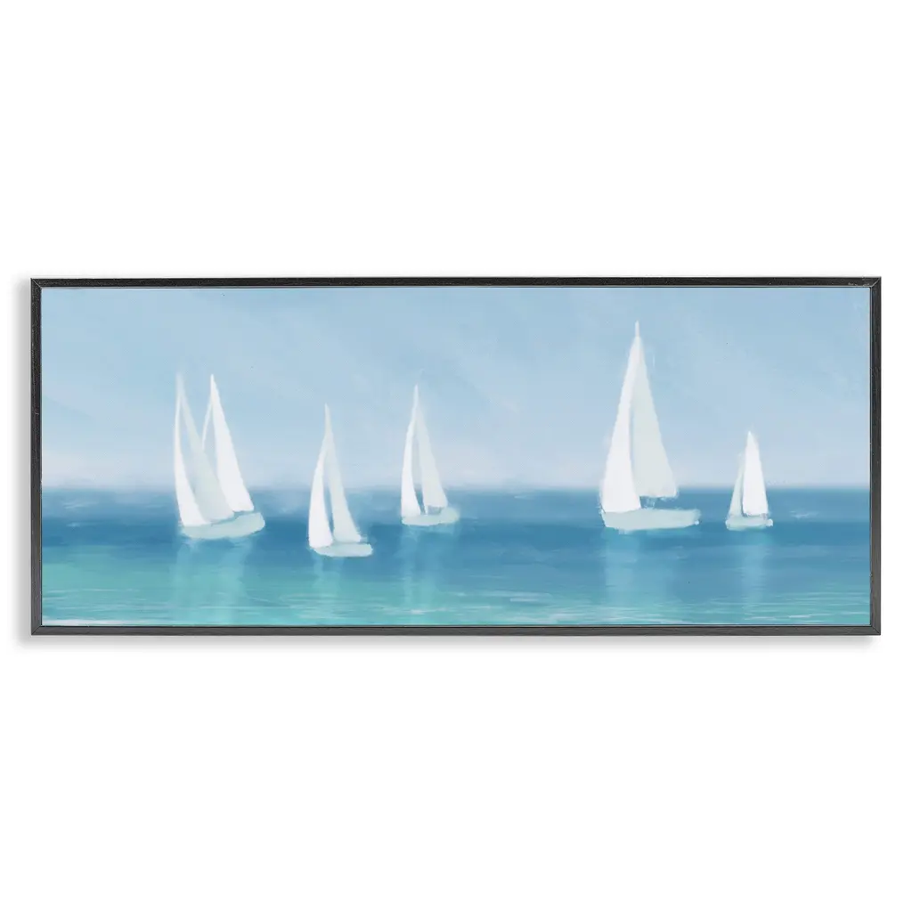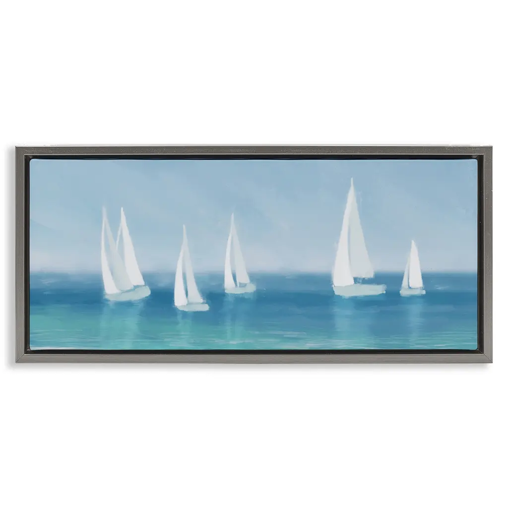 Stupell White Sail Boats Across Coast Framed Giclee Art Design By Dan Meneely - 24 X 10 - White