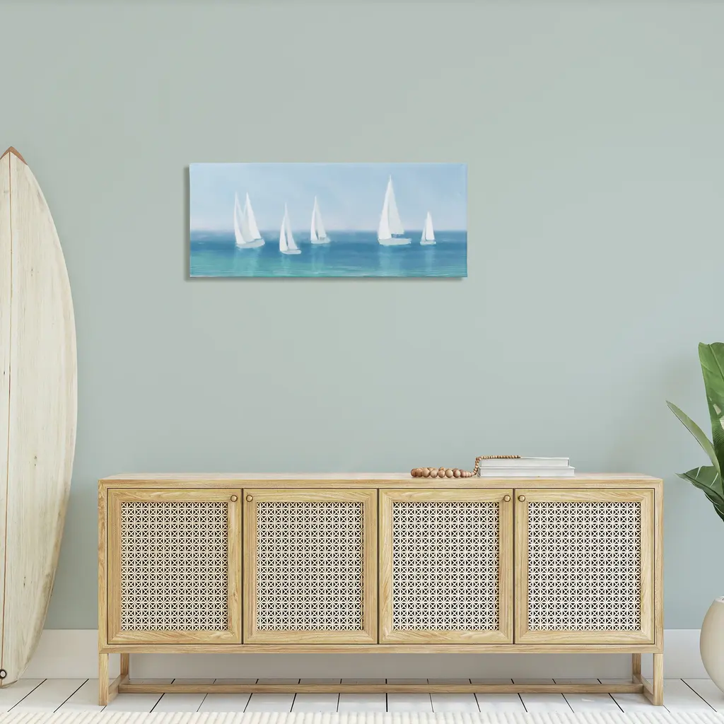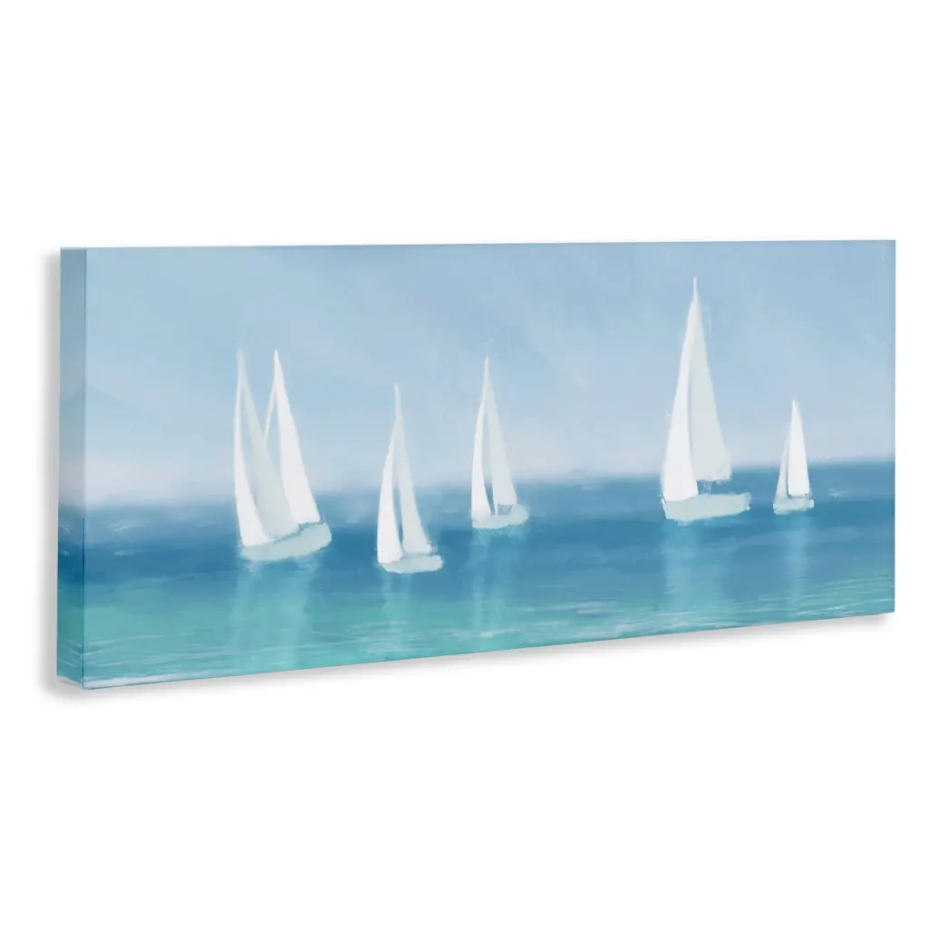 Stupell White Sail Boats Across Soft Blue Coast Canvas Wall Art - 17 X 40